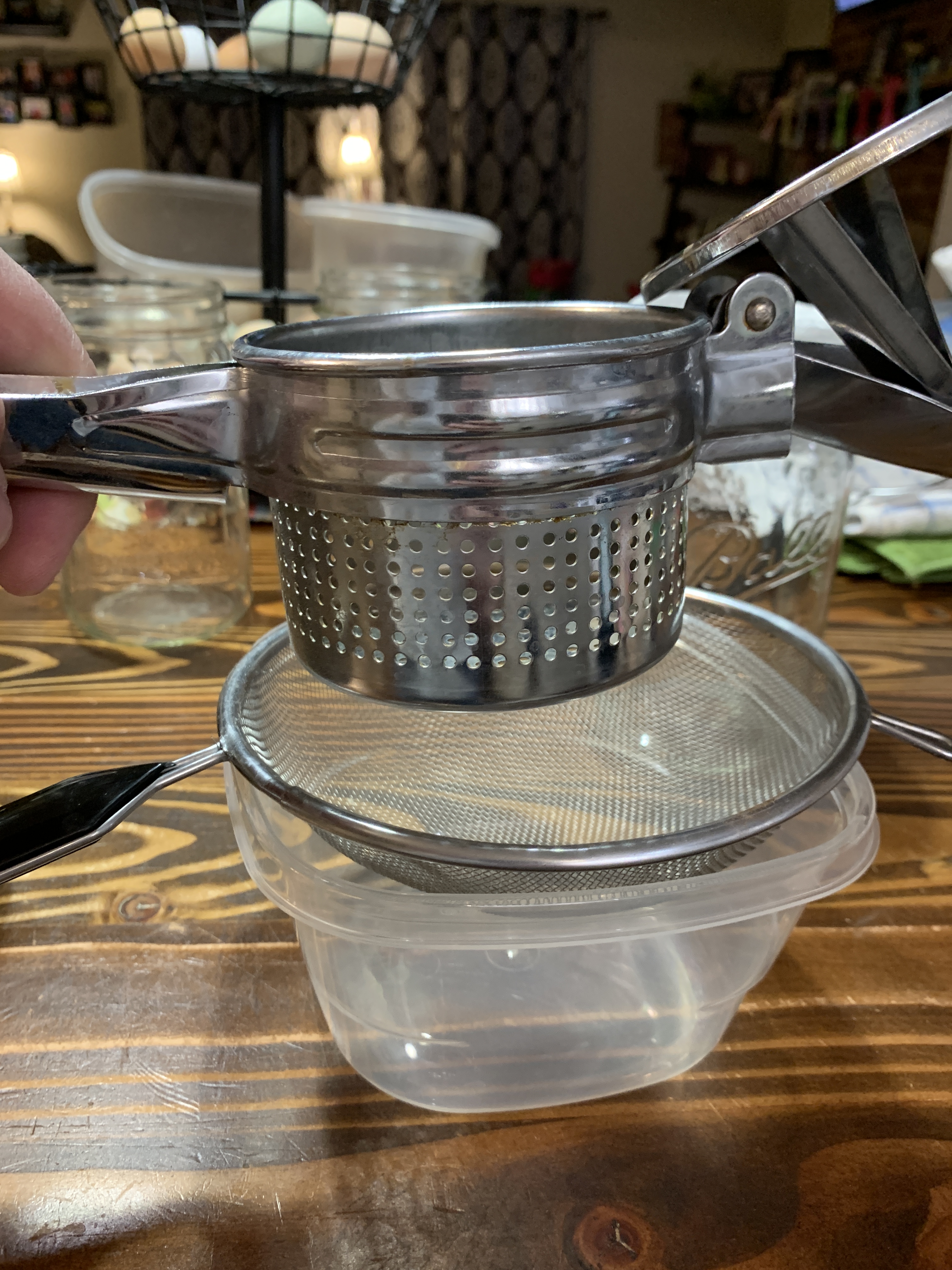 Once your herbal infusion has had ample time to work its magic, it’s time to separate the plant material from the precious liquid gold. Our secret weapon for this stage? A potato ricer and a metal sieve! This dynamic duo does wonders for the initial filtering. After pouring out the jar’s contents, we use the ricer to squeeze out every last drop of the potent liquid from the plant material. The next step involves slow and steady pouring of the liquid through coffee filters nestled in mason jars. This filtration process might take a while, and depending on the amount of sediment, you might need to replace the filters halfway through. But the reward? A beautifully clear tincture, ready to be stored in a cool, dark place and used as needed.