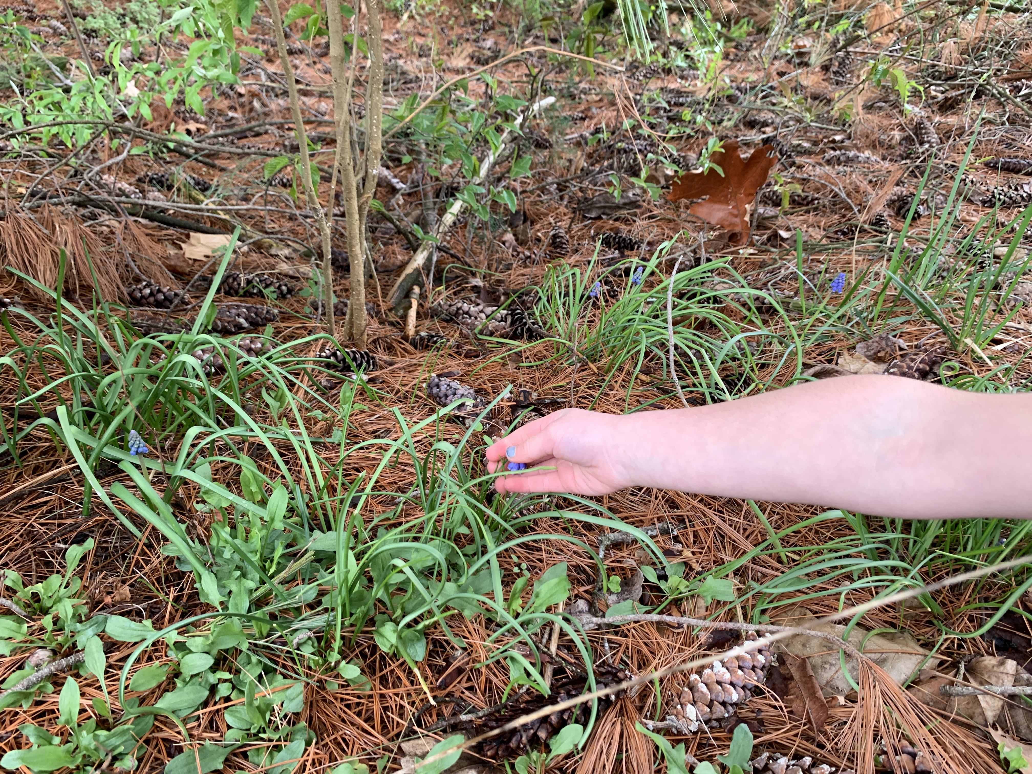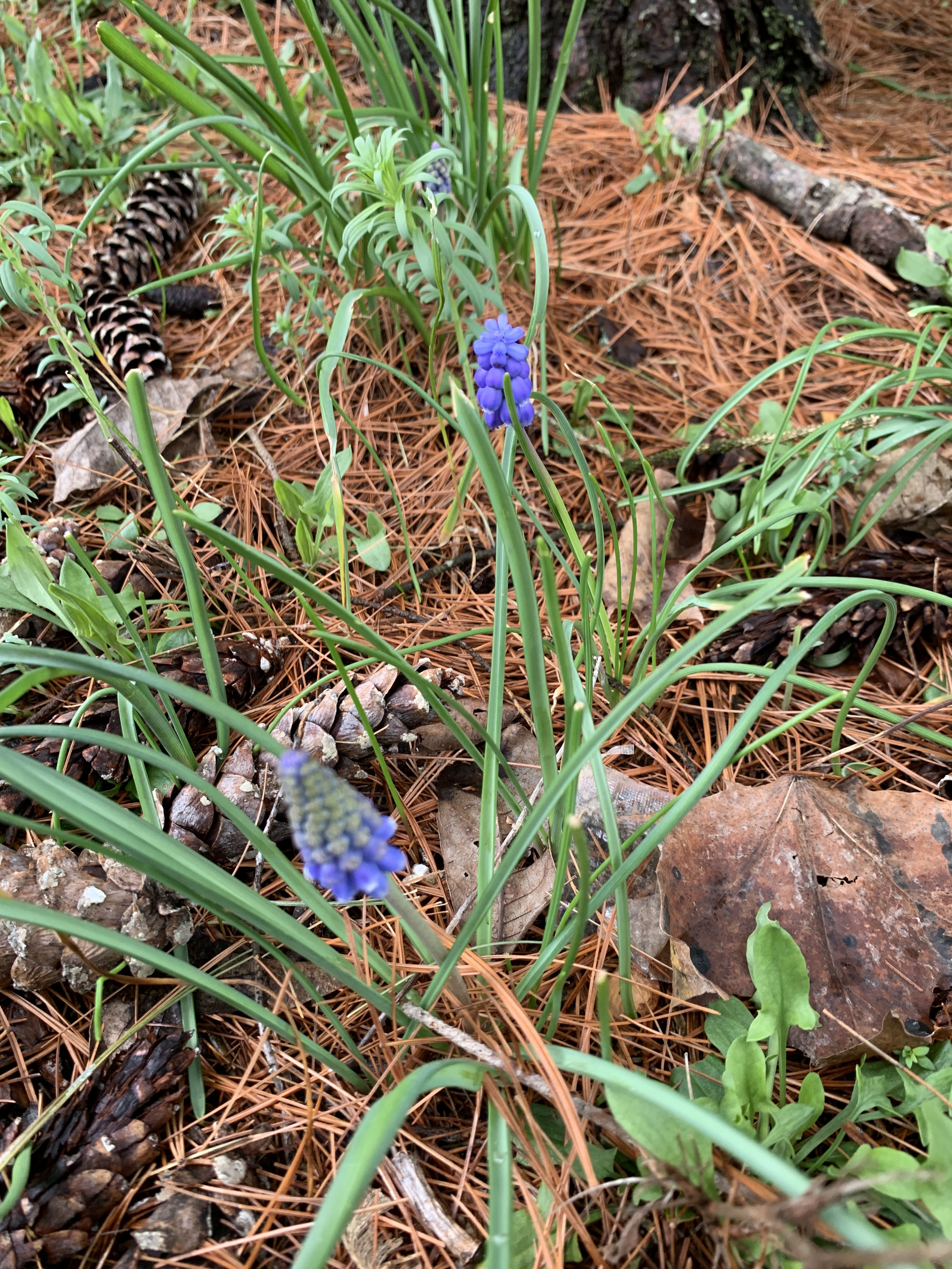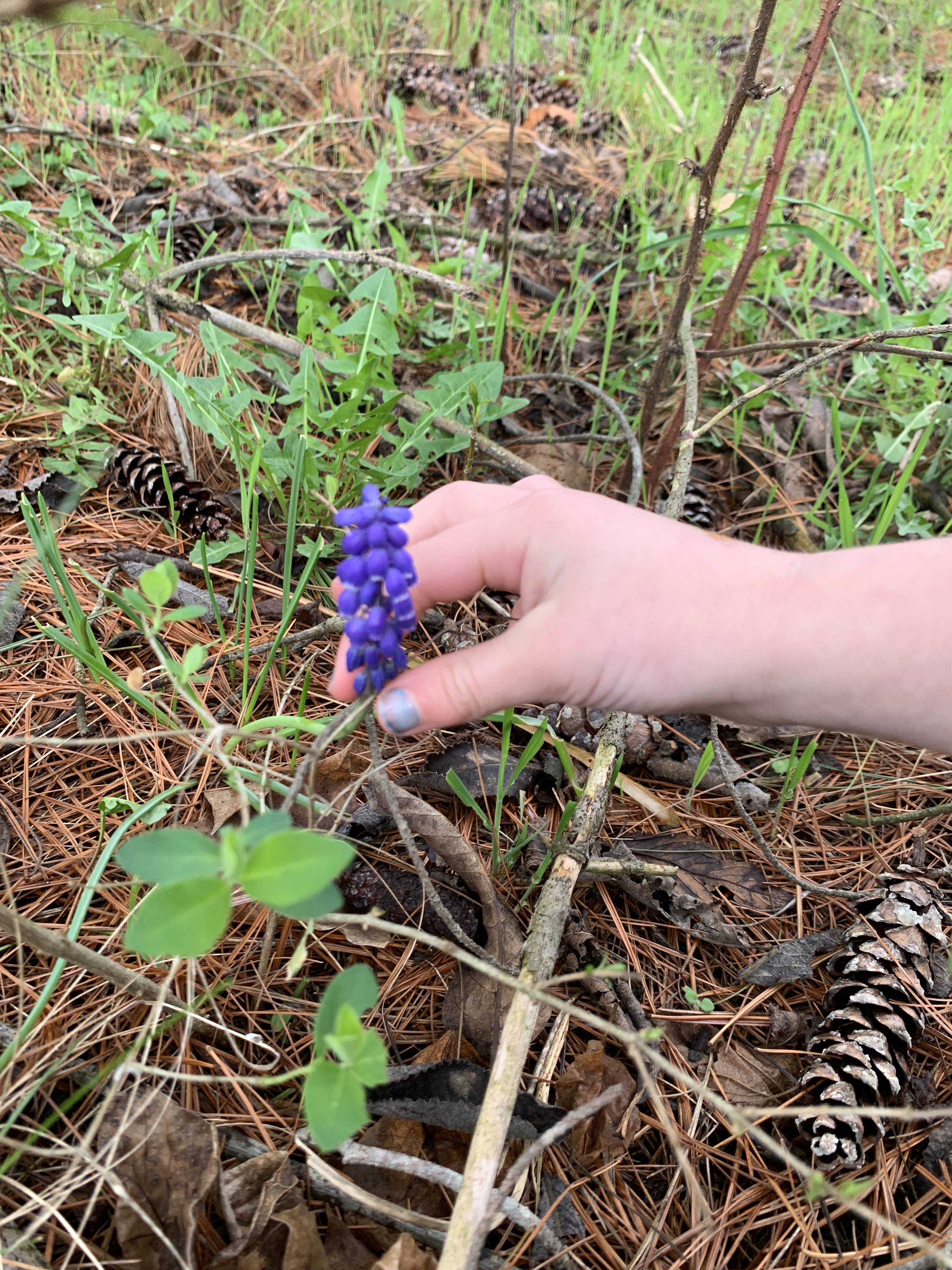 - If you don’t have enough grape hyacinth flowers, you can supplement with a few violets for a similar floral touch.