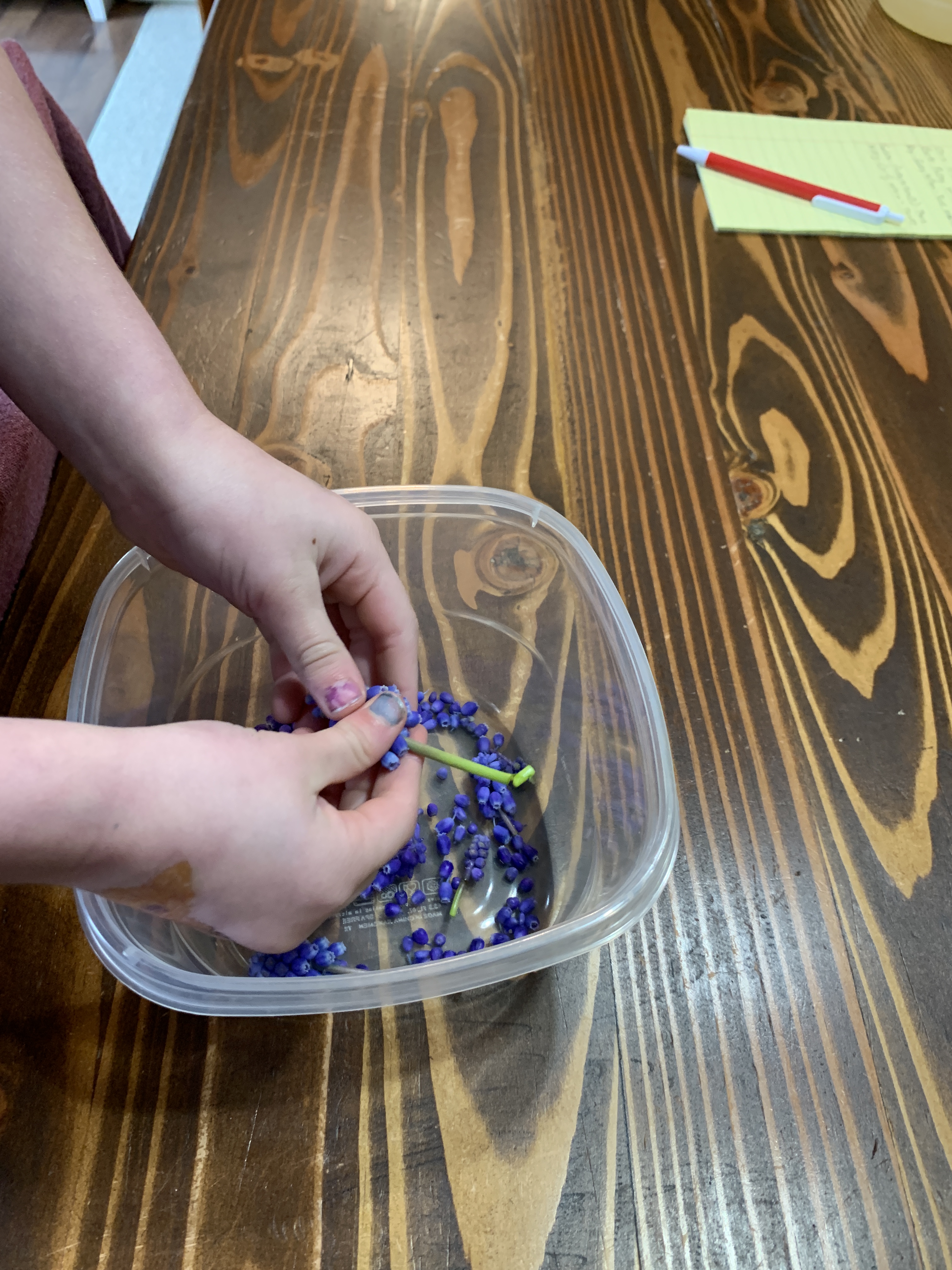 Intrigued, we had to investigate. A quick smartphone consultation later, and we had our answer: grape hyacinths! Now, for someone who loves lemonade as much as Eva does, this discovery sparked immediate excitement. Apparently, grape hyacinths can be used to make a unique and colorful lemonade – a perfect project for a rainy afternoon!