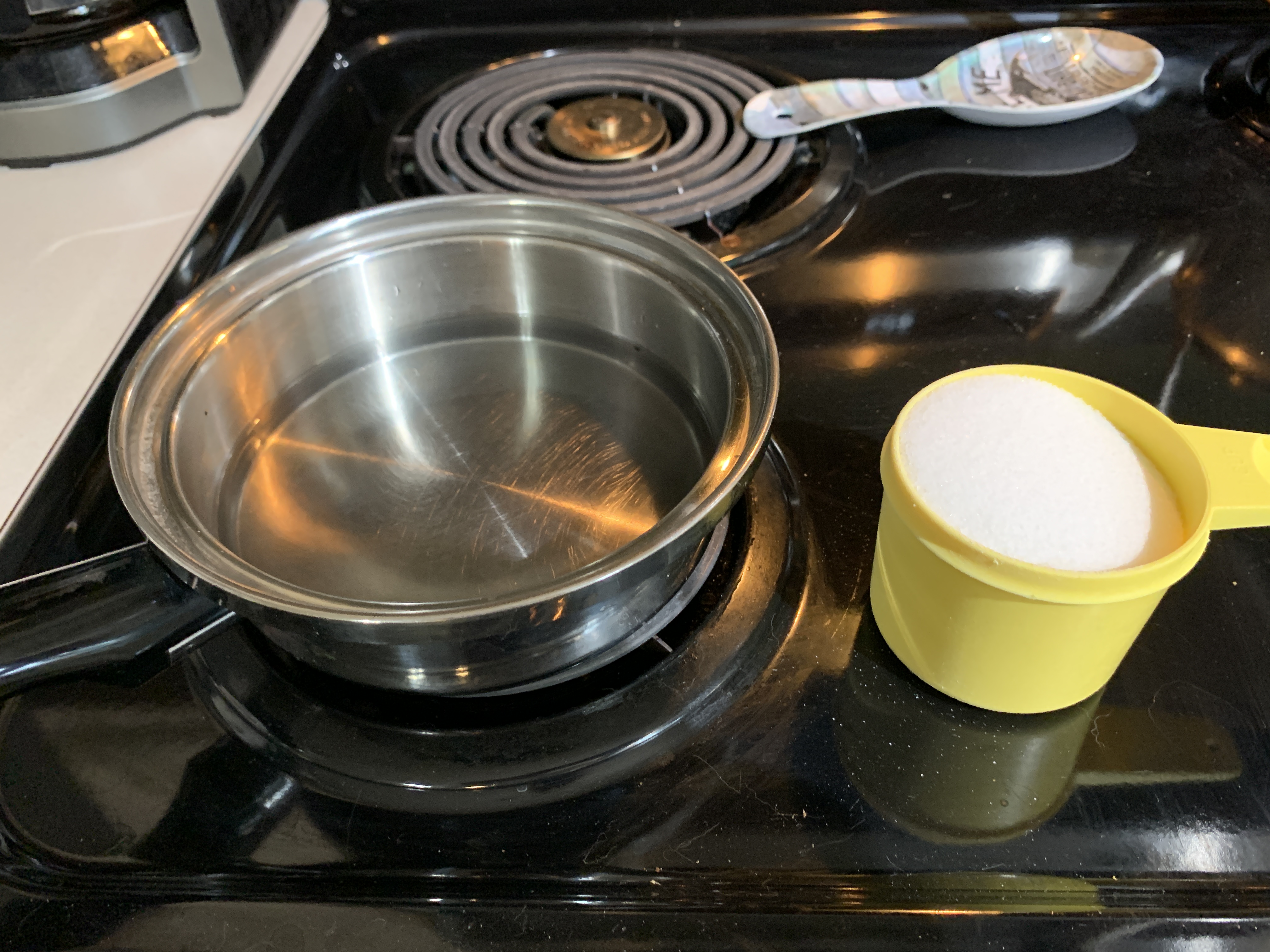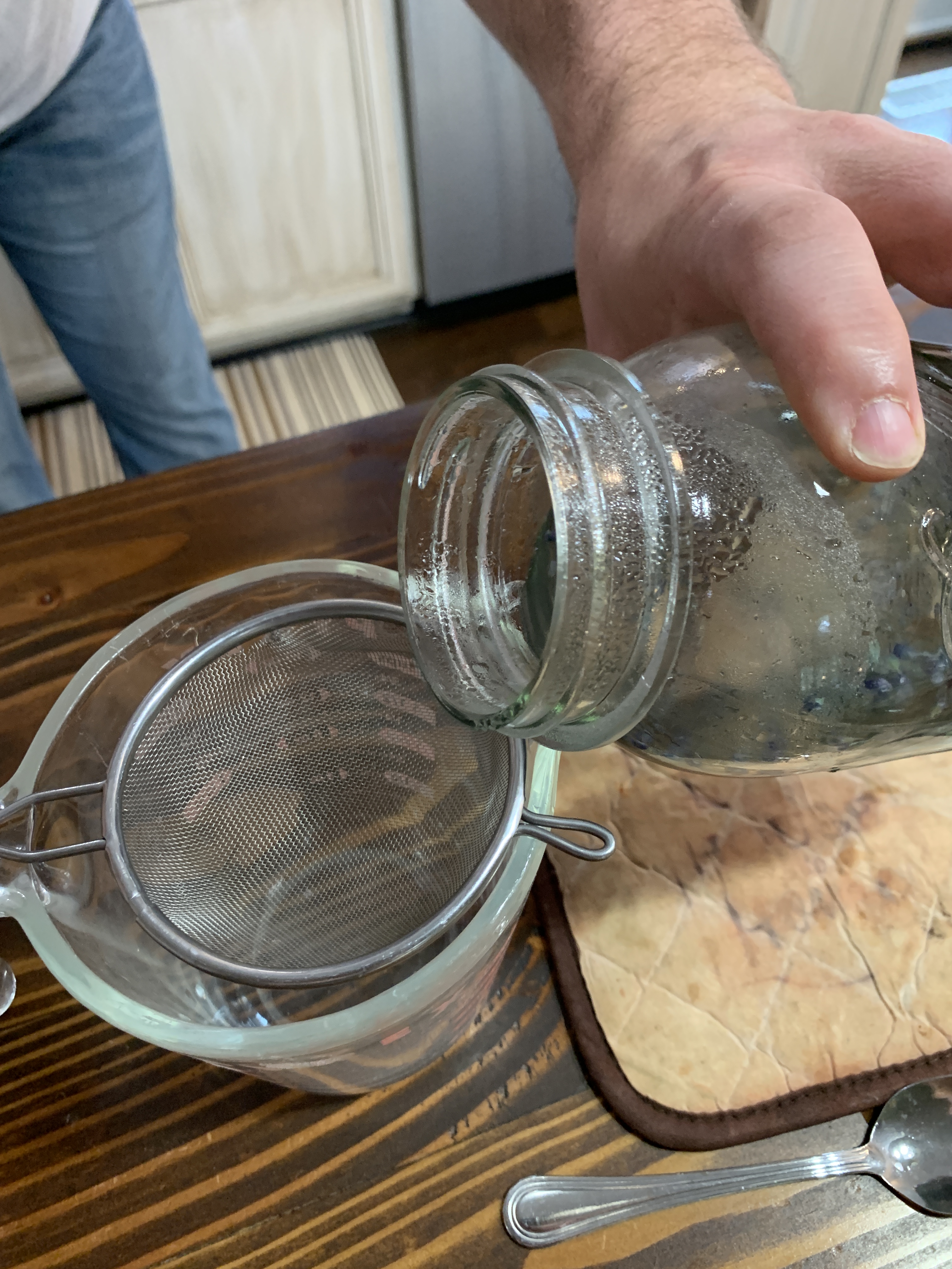 After an hour of anticipation, it was time to peek at our floral infusion. While the online descriptions boasted a strong floral presence, our concoction had a more subtle, but pleasant, floral note. No worries though! We strained out the flowers and measured out a cup of the fragrant liquid, ready to transform it into a vibrant simple syrup.