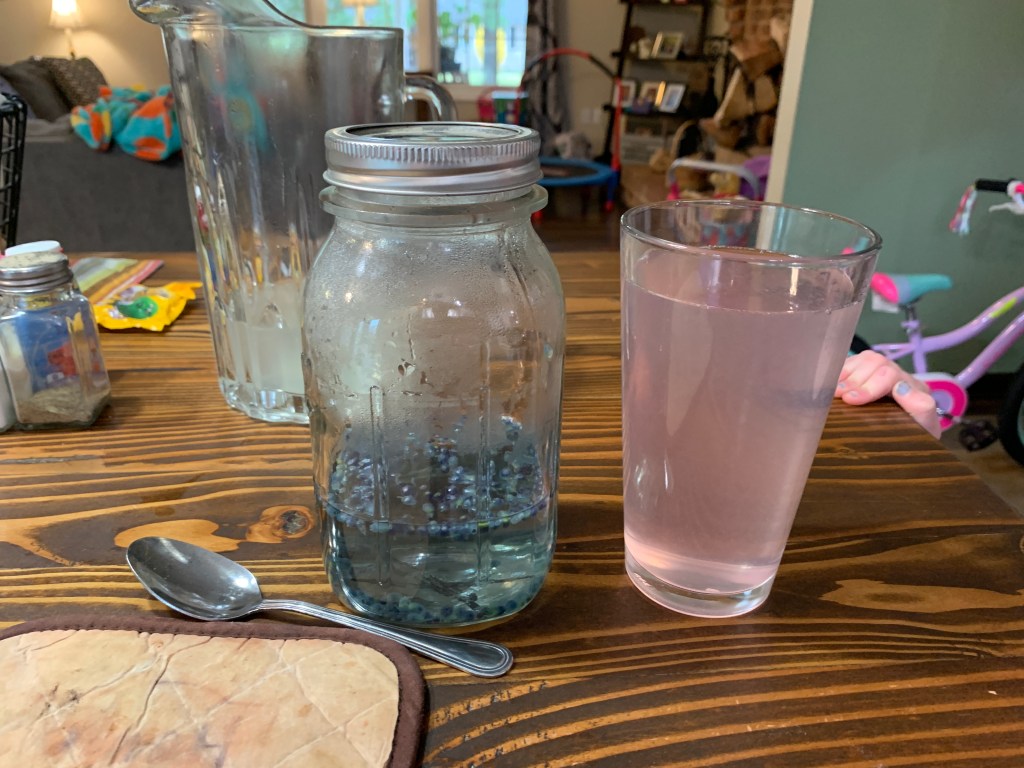 Now came the part that had Eva bouncing with excitement. We added our bluish-hued hyacinth syrup to the chilled lemonade, and – ta-da! – a chemical reaction right before our eyes! The two liquids swirled and transformed into a beautiful shade of pink. Science is fun, isn’t it?