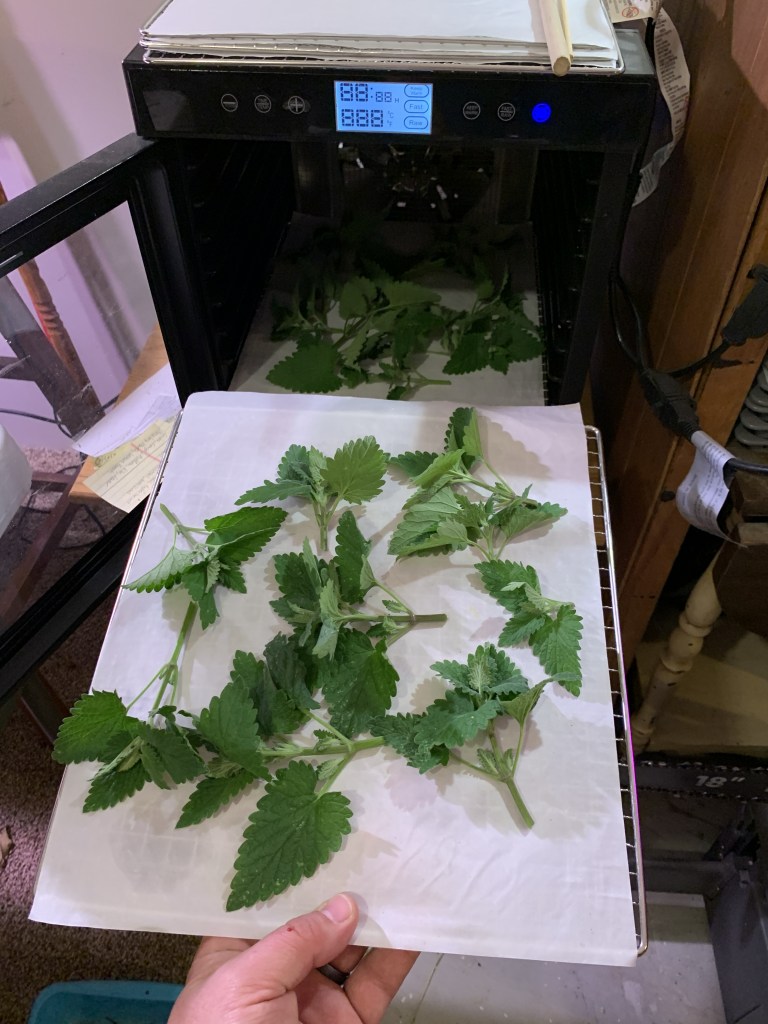 Since we’re using the catnip for ourselves, we opted to dehydrate our harvest. This preserves the potency of the leaves for later use. Here are some quick drying tips: