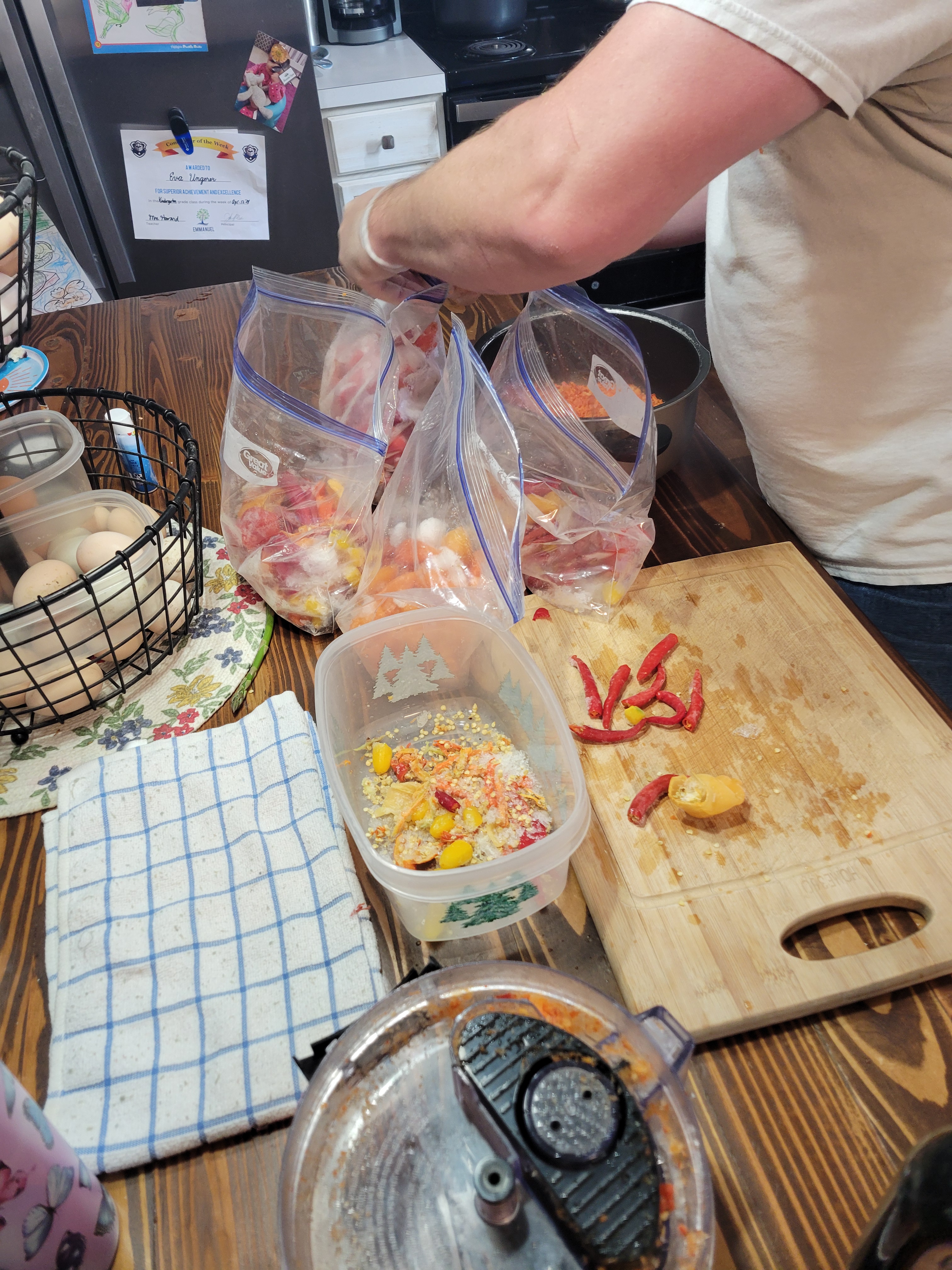 In fact, we’ve depleted our stock enough that it was time to replenish and freezer clean out was the perfect time to do it. We found 4 gallon sized bags of last year peppers just waiting their turn to become something yummy!