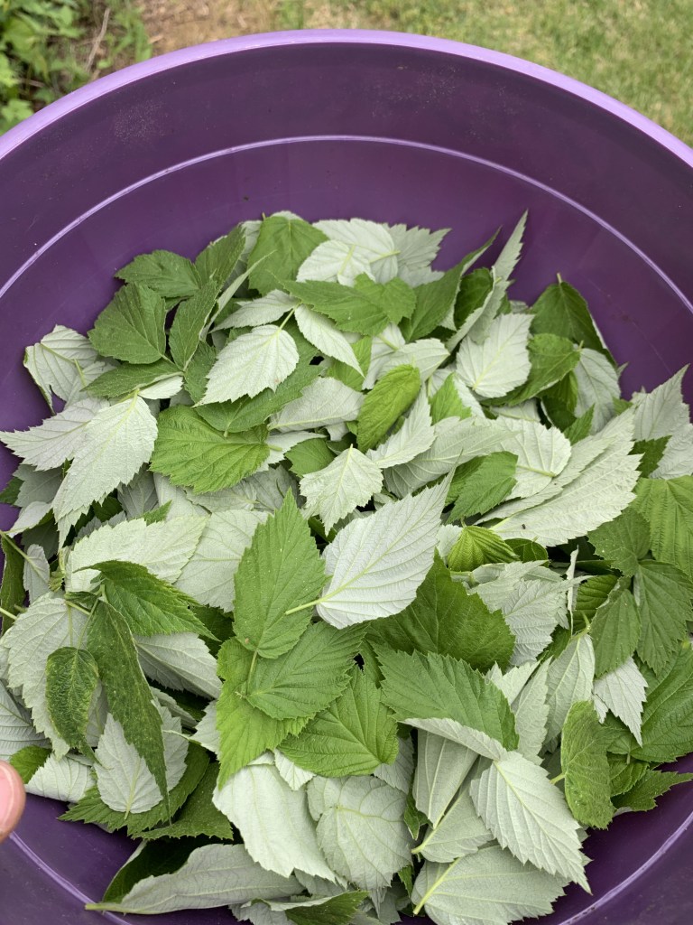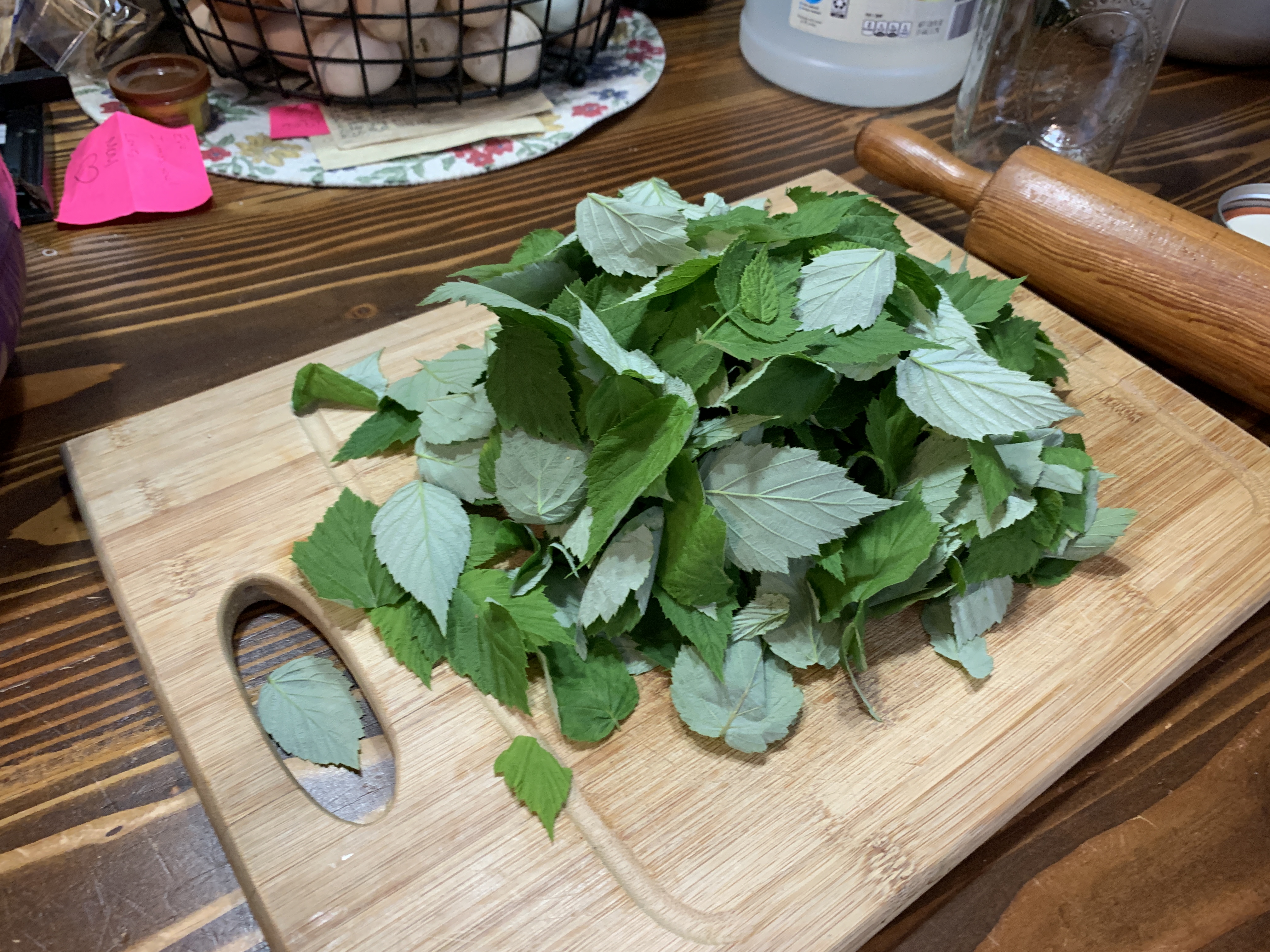Before we delve into the world of tea, the first step is harvesting the star ingredient: black raspberry leaves. These beauties thrive in woodlands, thickets, and forest edges. Look for bushes with slender canes and dark purple or black berries (a delicious reward for your foraging efforts!). Identify the leaves – they’ll be compound, with serrated edges and a distinctive white underside. We have lots of patches growing around our property. And nothing beats fermented raspberry leaf tea (Recipe below). The best time to harvest the leaves is right before the berries show up.