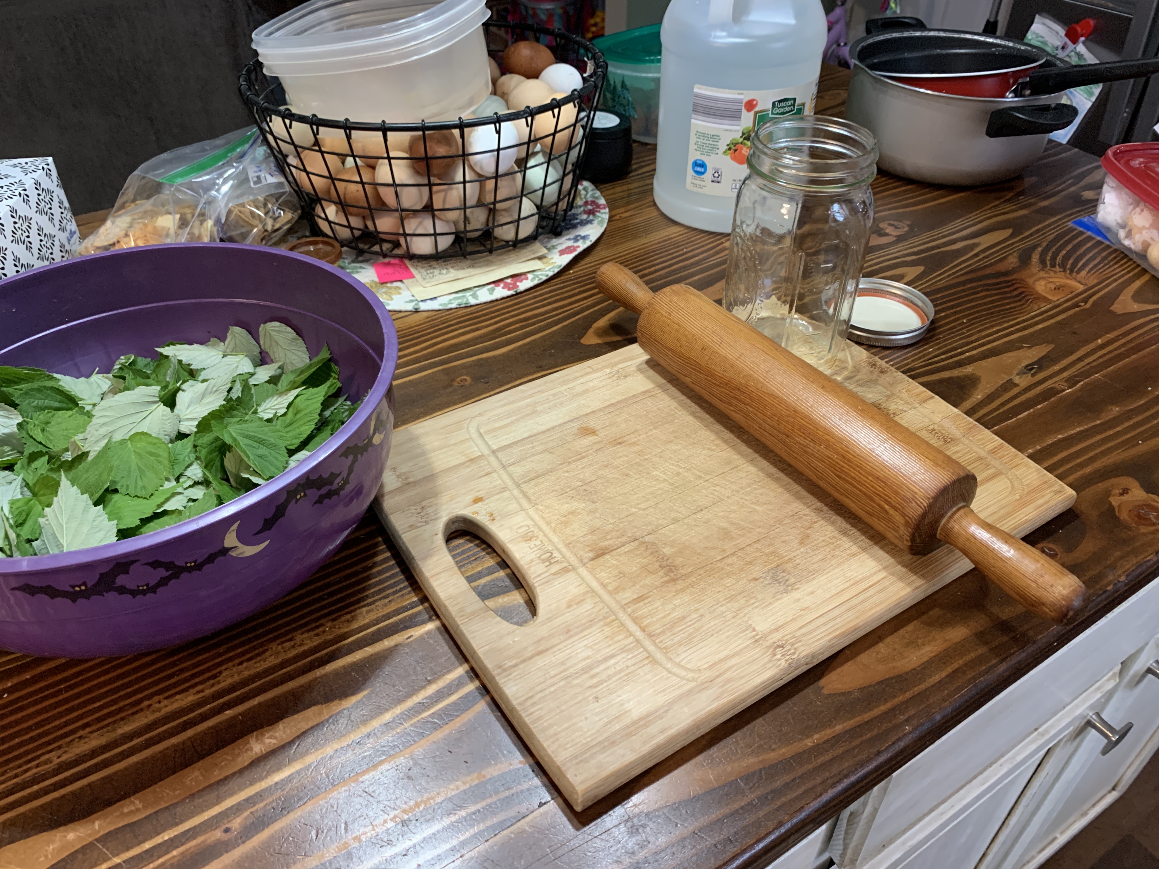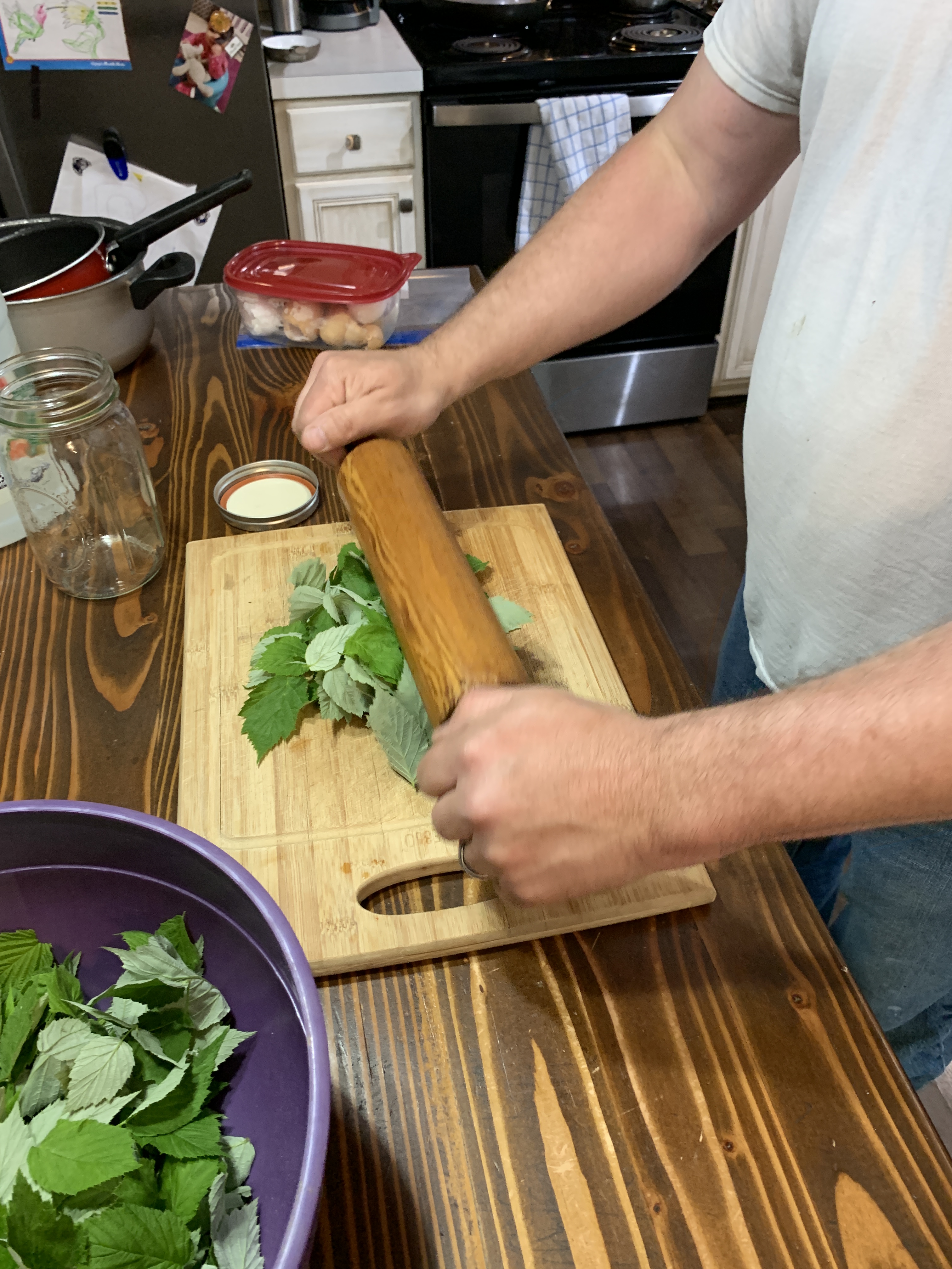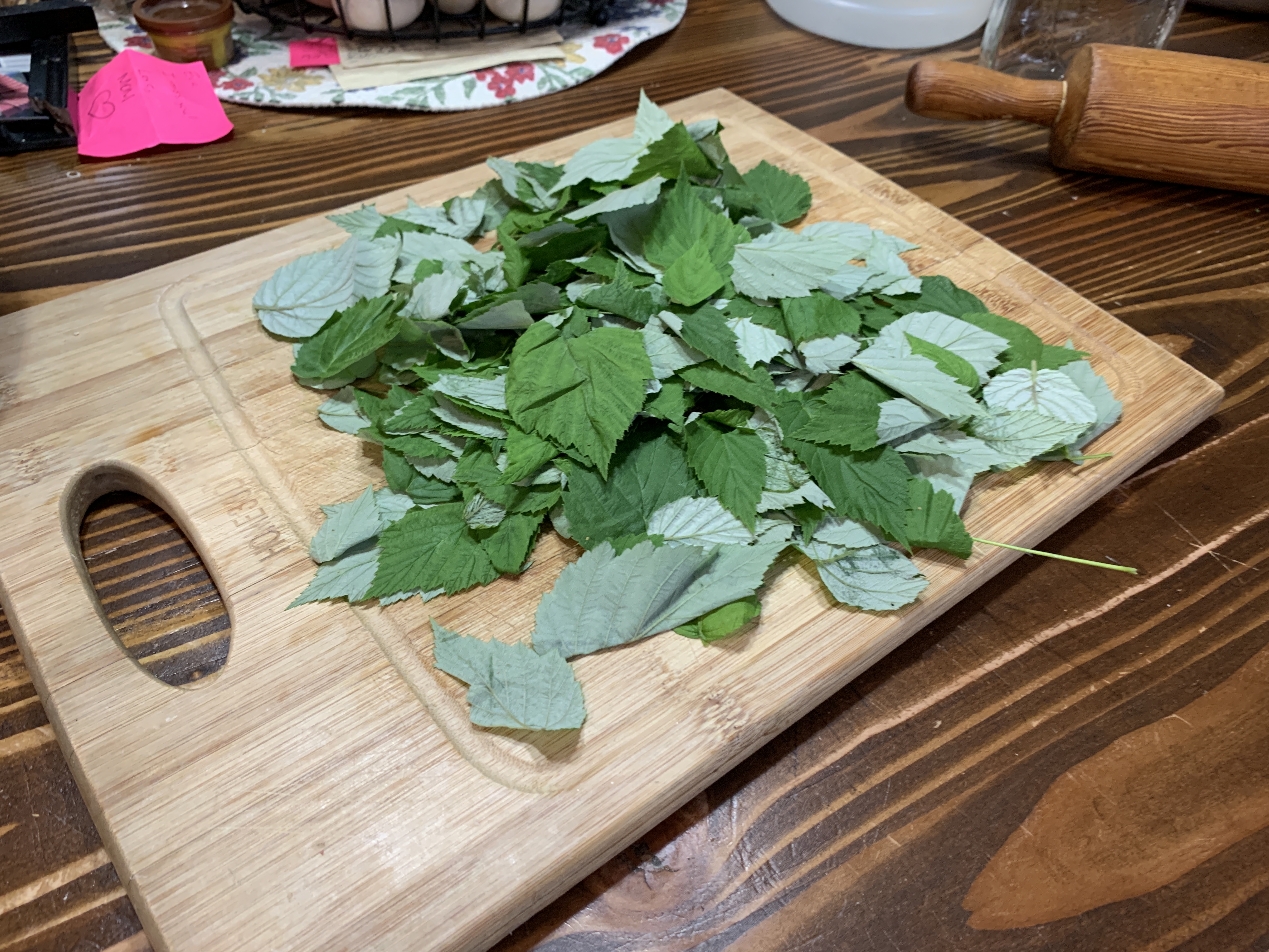 - Bruise the leaves: Gently crush or bruise the fresh black raspberry leaves to release their juices. We put them on a cutting board and roll a rolling pin over them several times till they start to show some bruising.