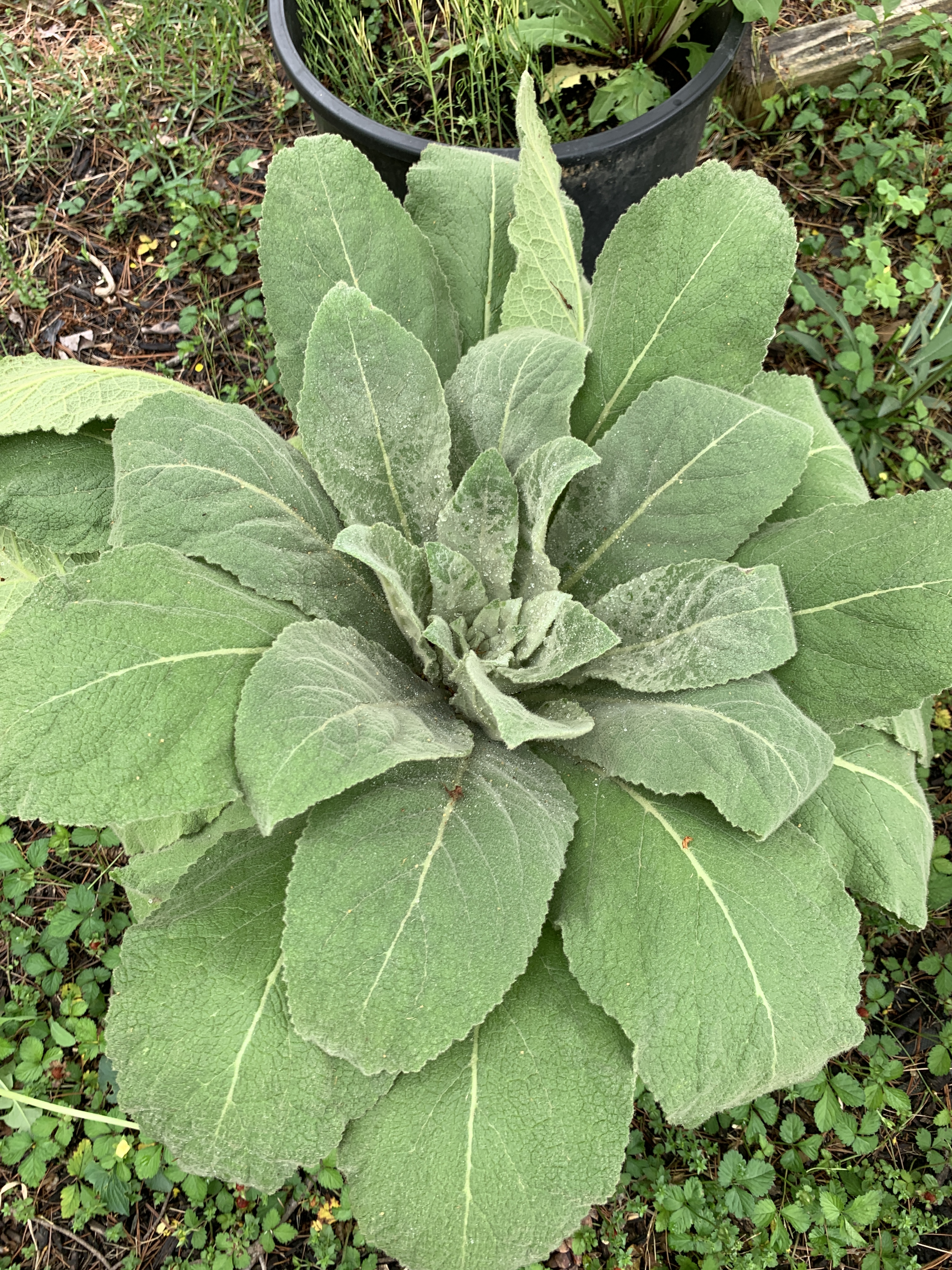 A couple of years ago we threw some mullein seeds around our orchard area to start sourcing our own mullein. Well, they’ve grown into magnificent second-year plants, and with their towering stalks reaching for the sky, it’s time to harvest their bounty – the velvety mullein leaves!