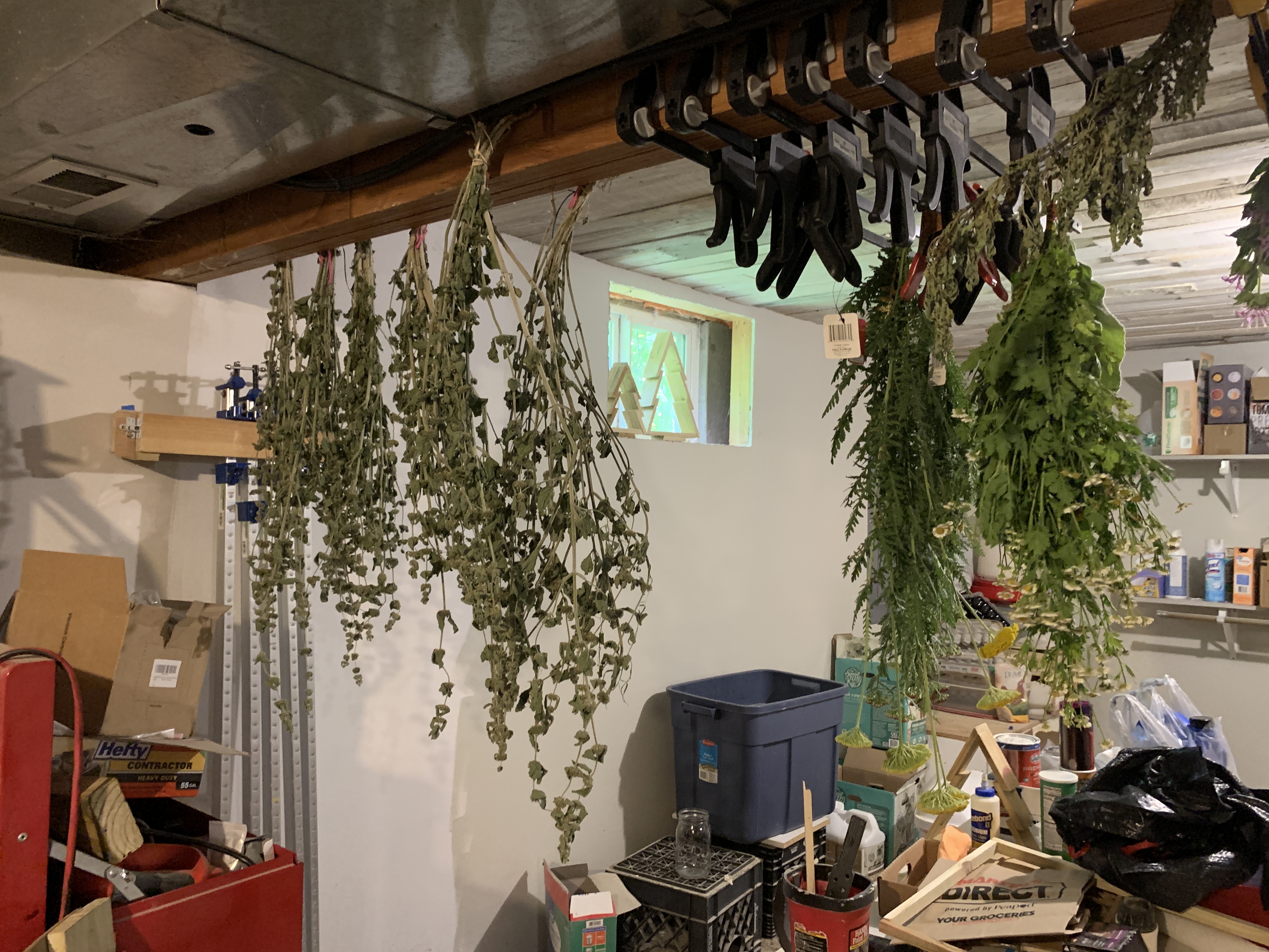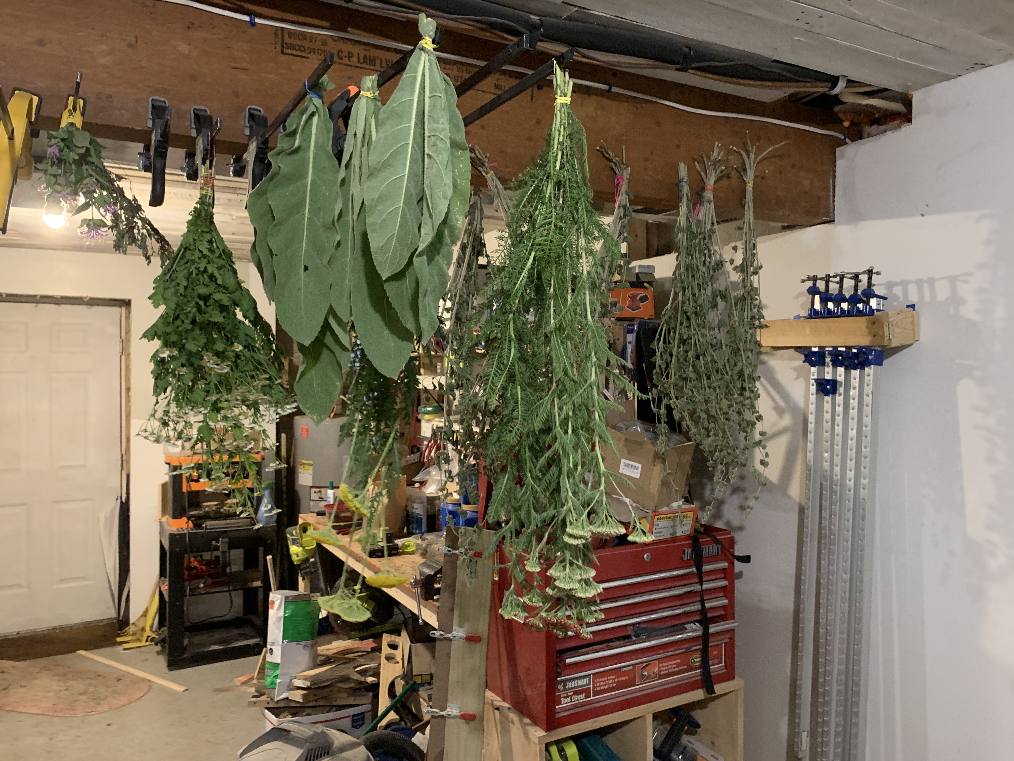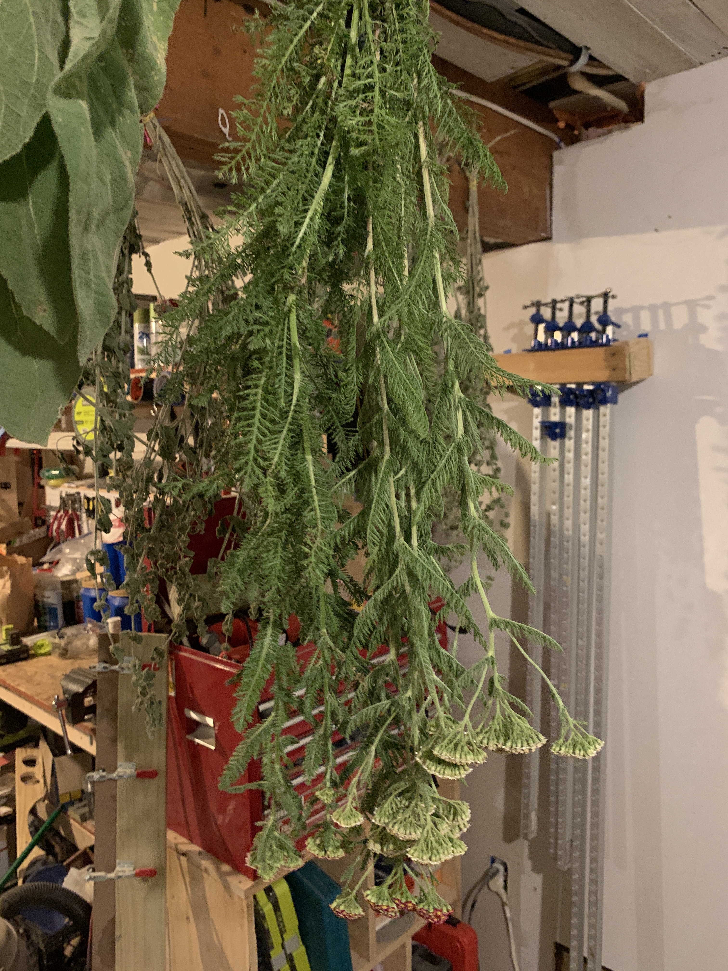 For us, dehydrator space is at a premium, so a good bit of our herbs, including Yarrow, are being hung in the basement to dry.