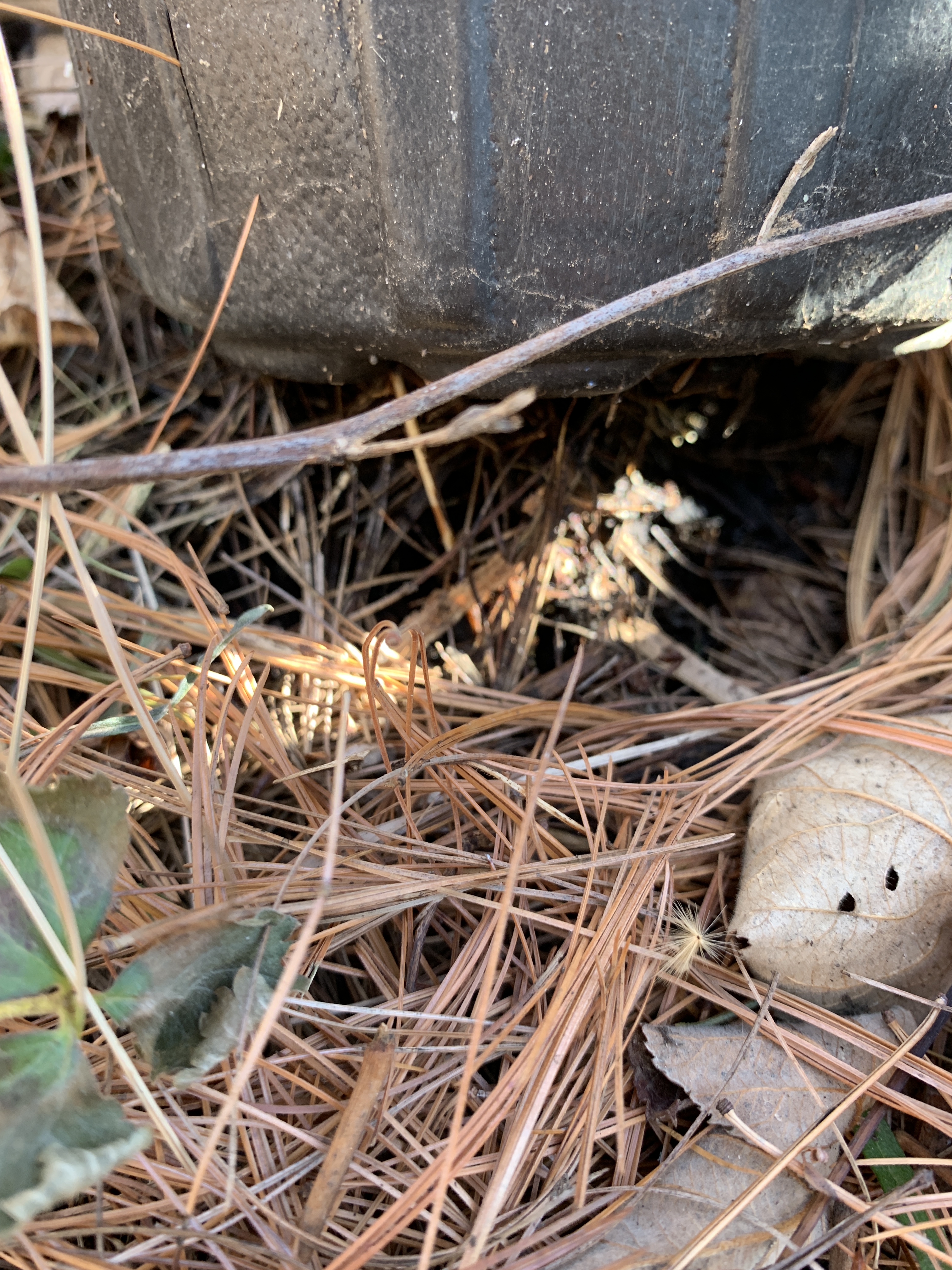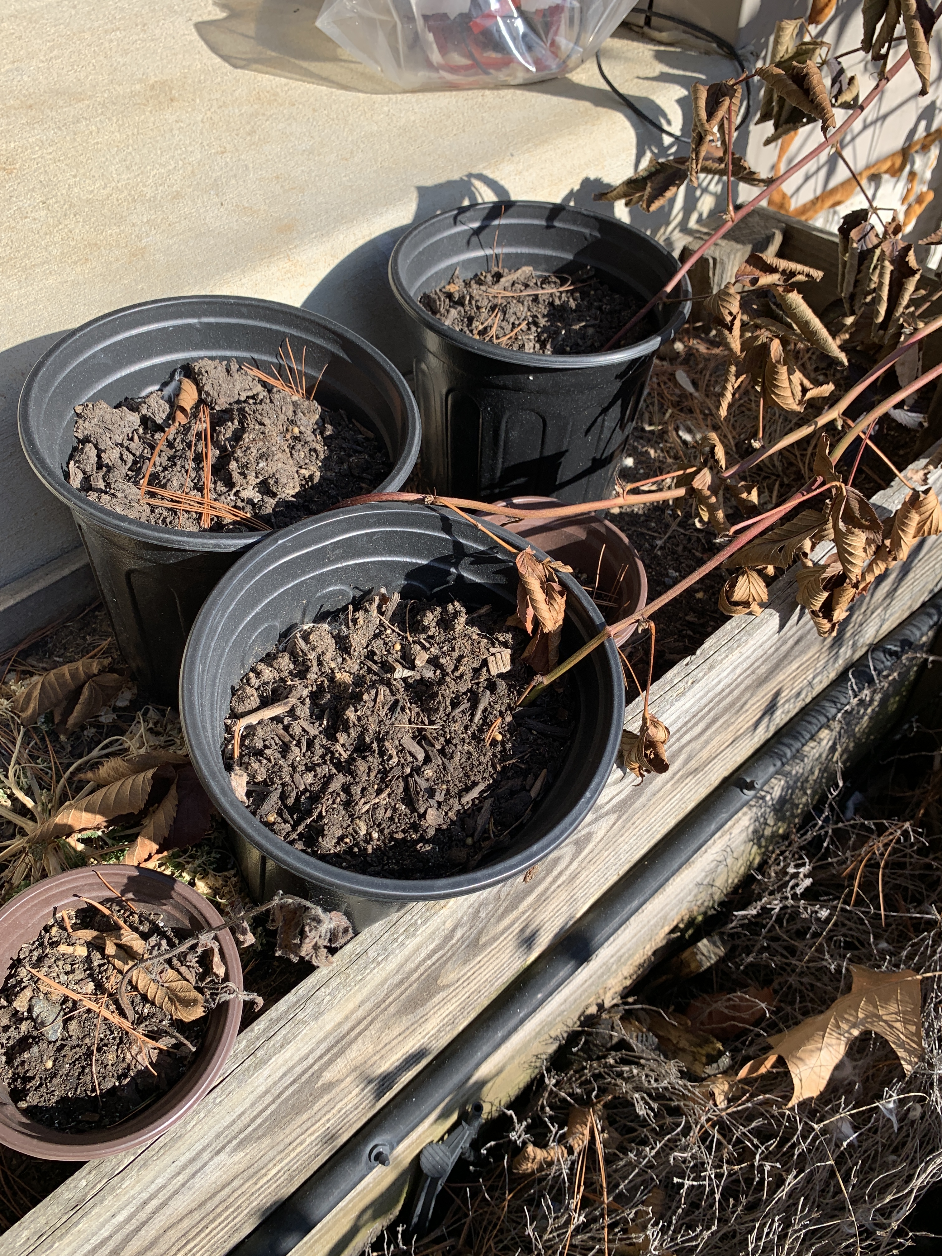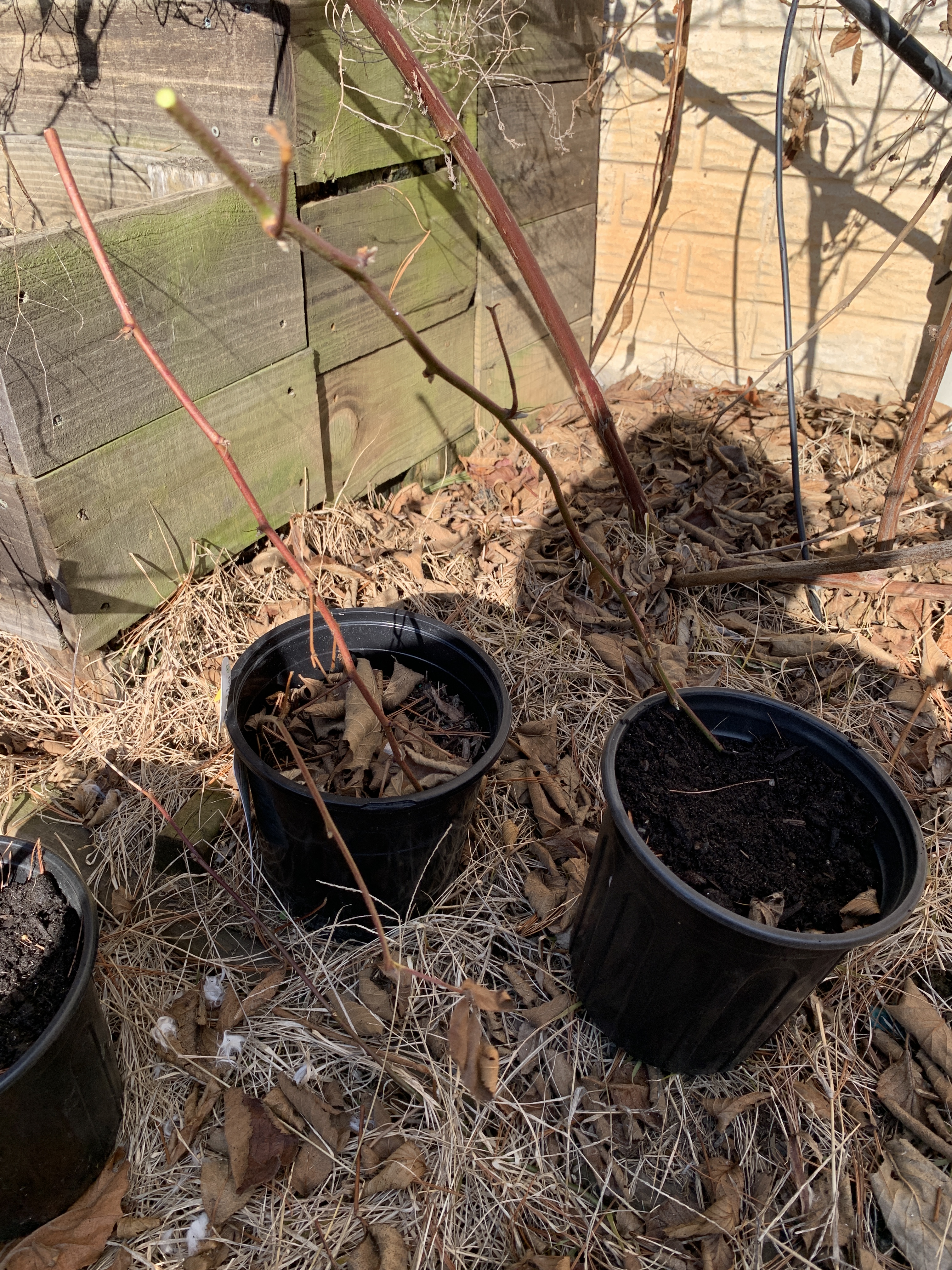 Once buried, we left the pots in place through fall and winter, allowing them to overwinter naturally. During this time, roots began forming at the buried tips as the plants went dormant. This process requires minimal effort—just let nature do its thing!