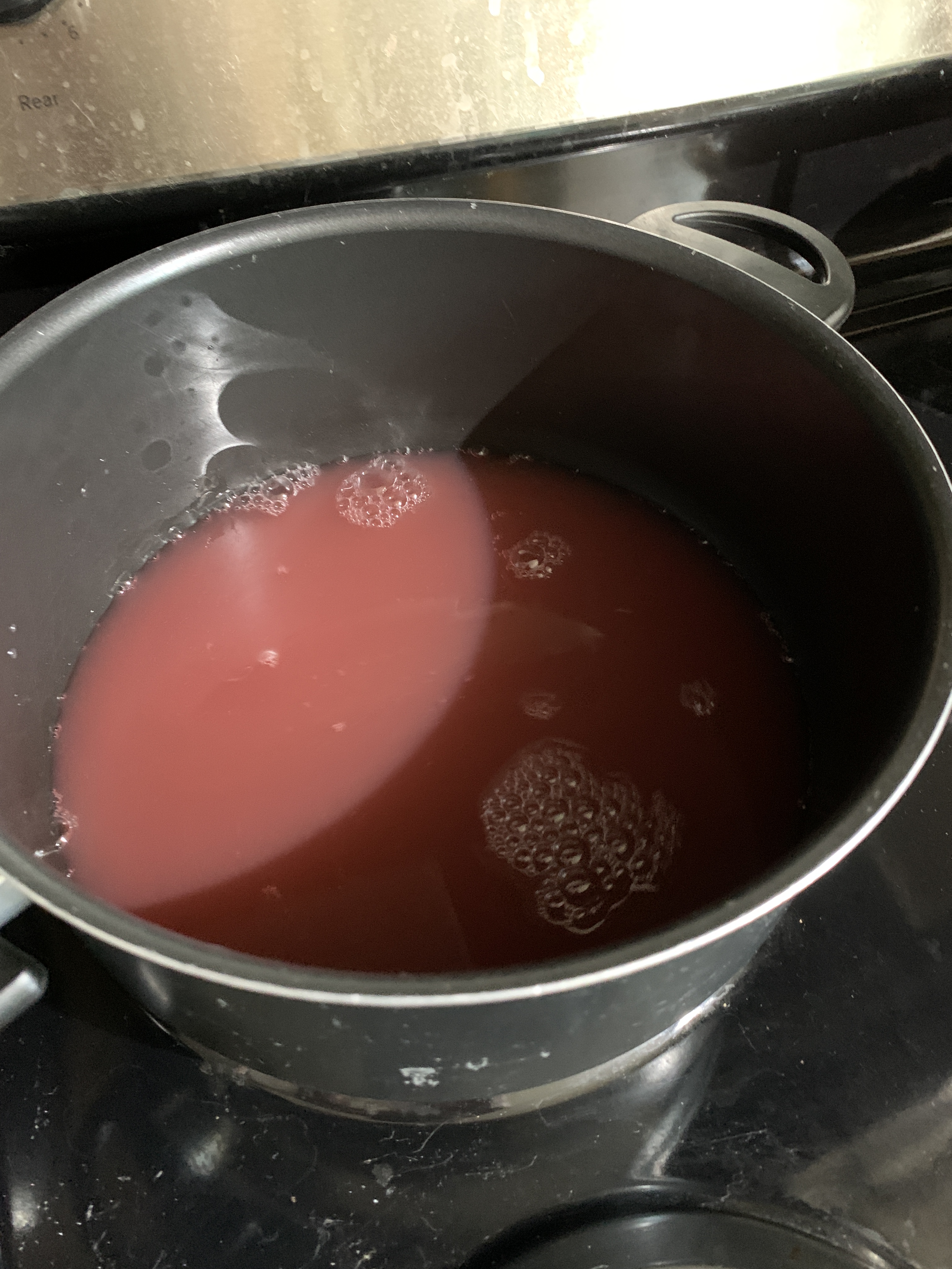 Once the initial boil was done, we covered the pot and placed it in the refrigerator to sit overnight. This long, cool steep allows the water to become deeply infused with a beautiful peachy flavor and a lovely blush color.