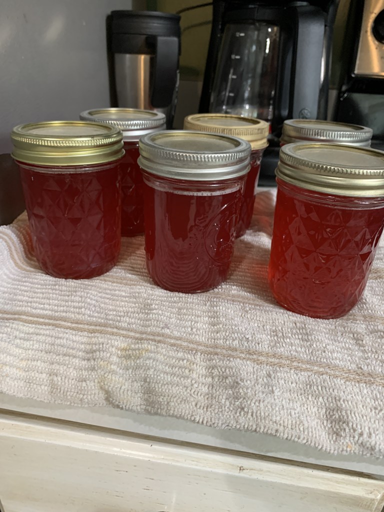 5. Once ready, carefully ladle the hot jelly into hot, sterilized pint jars.