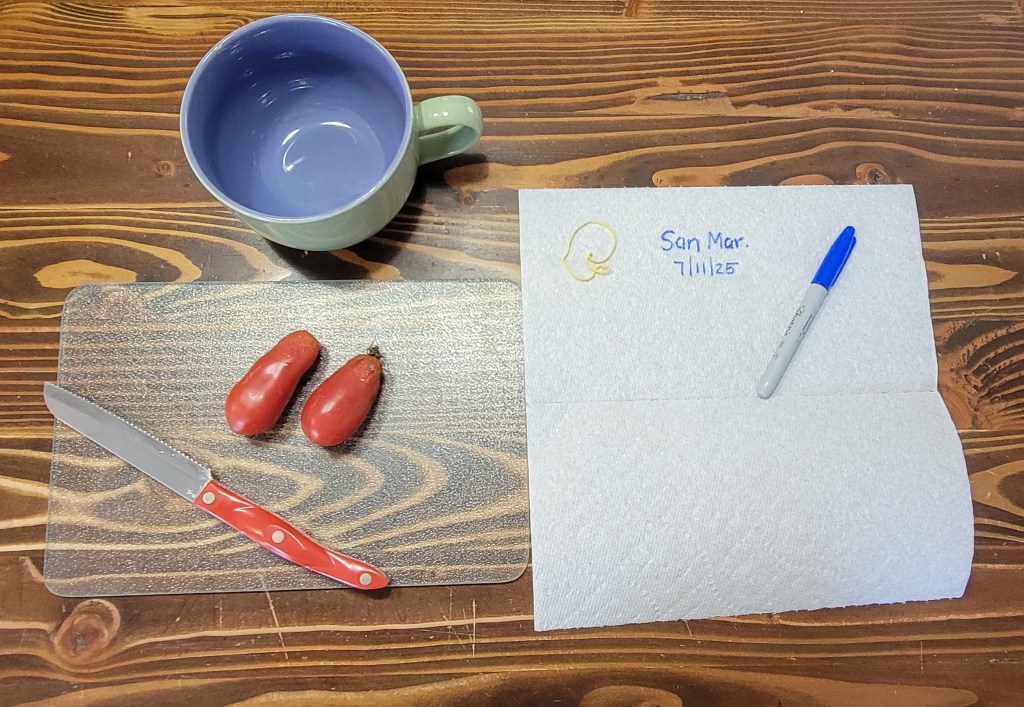 10. Dump seeds onto your paper plate and label with type of tomato and date collected.