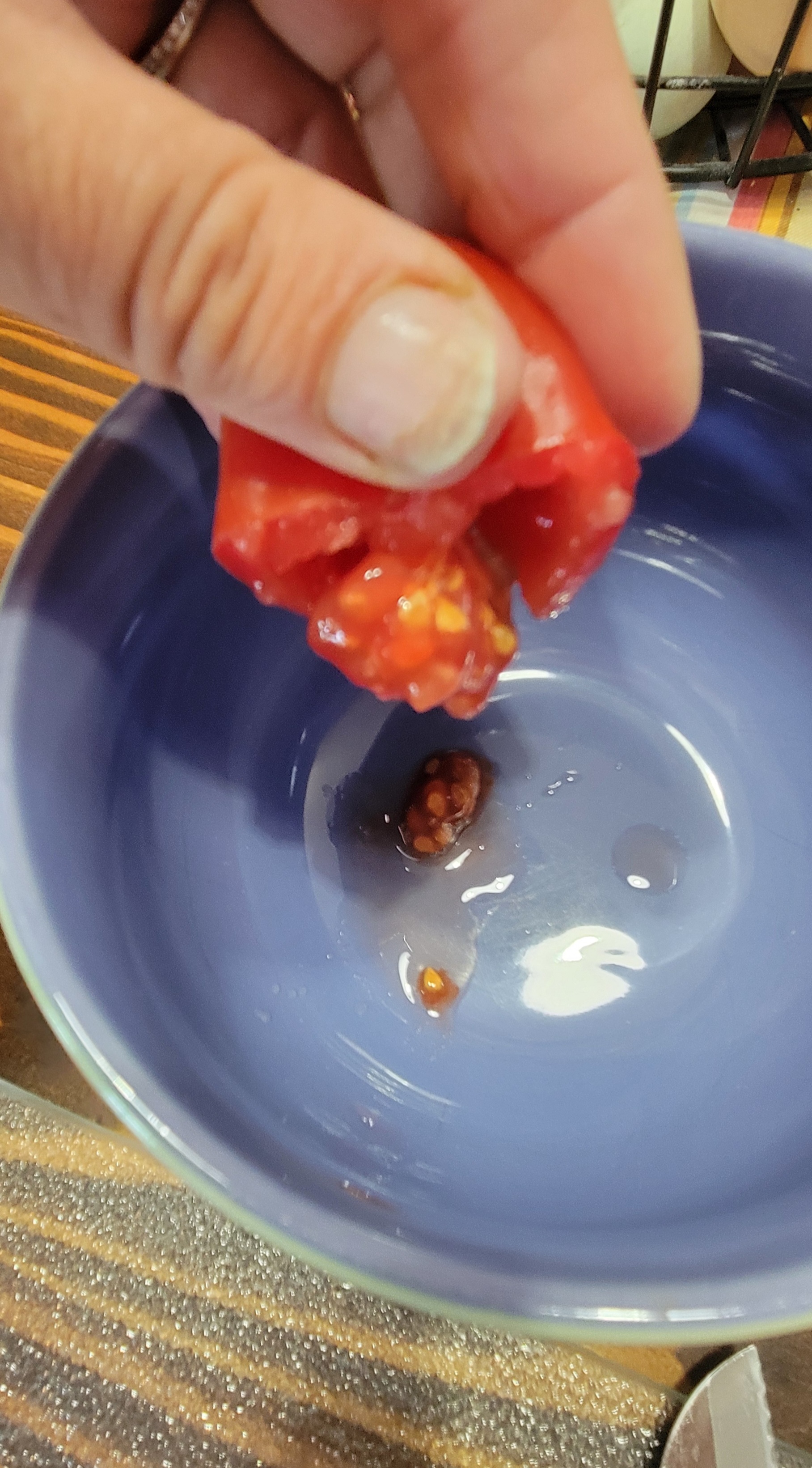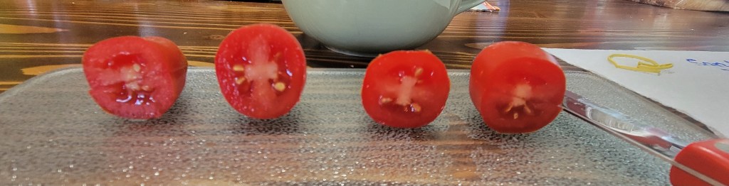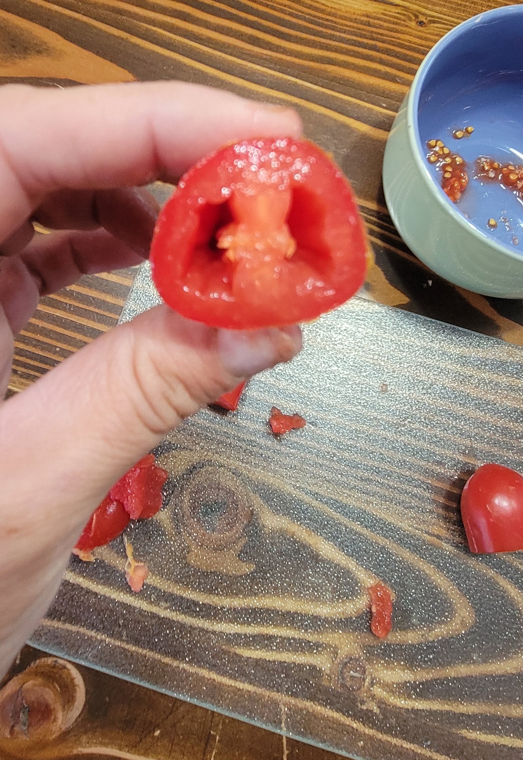 3. Repeat this process with however many tomatoes you have. If you have multiple varieties, use separate bowls for each kind.