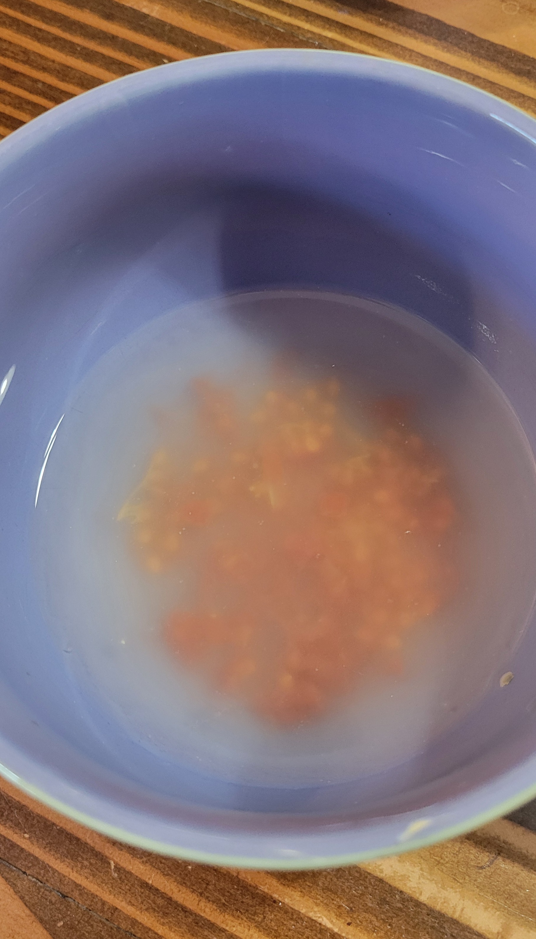 7. On day 3, it is time to rinse. Open your container. You will likely notice that the water in now quite cloudy, maybe smelly, and even has developed some mold. That is okay….DO NOT PANIC!!! That is the pulp, not the seeds.