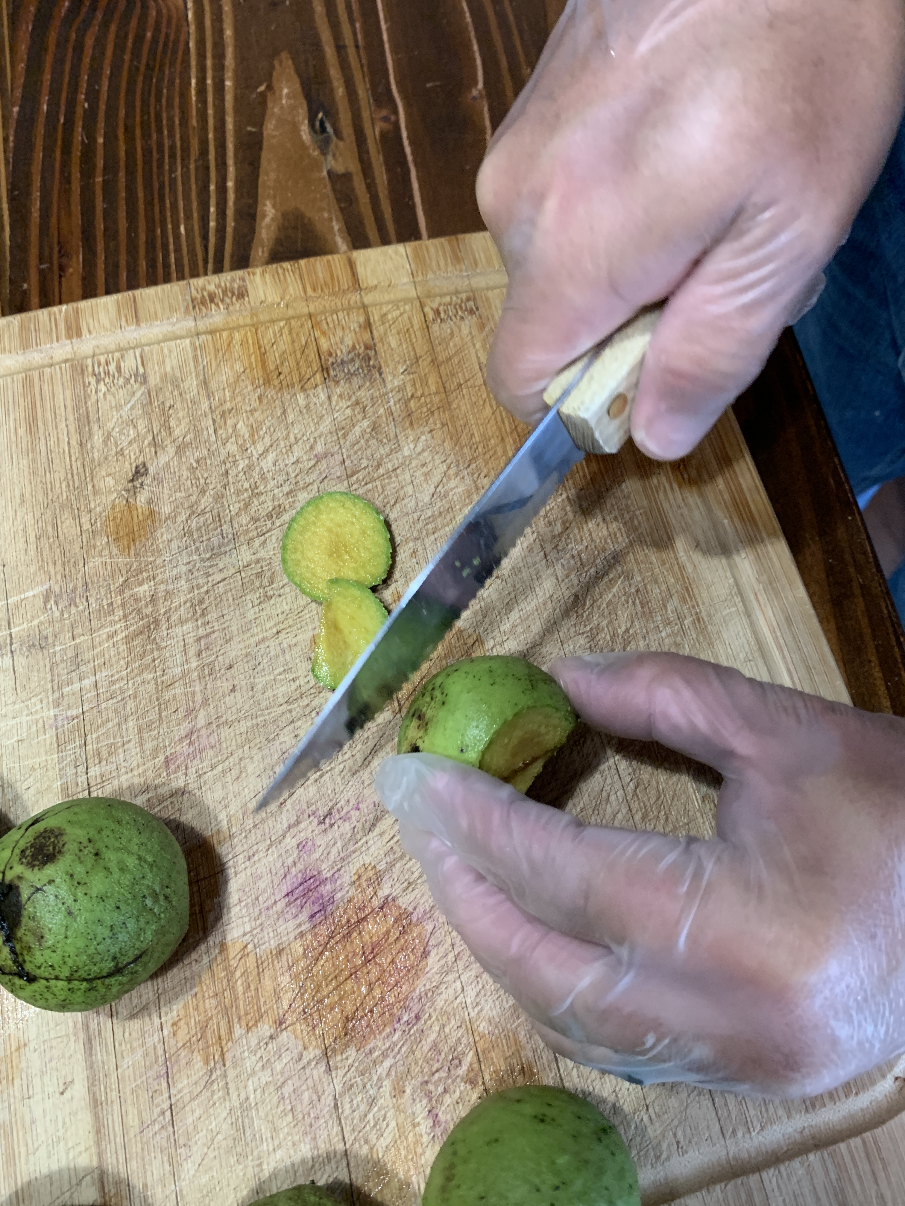 - Harvest and Clean: Gather the green, unripe black walnuts. Wash them thoroughly to remove any dirt or debris.