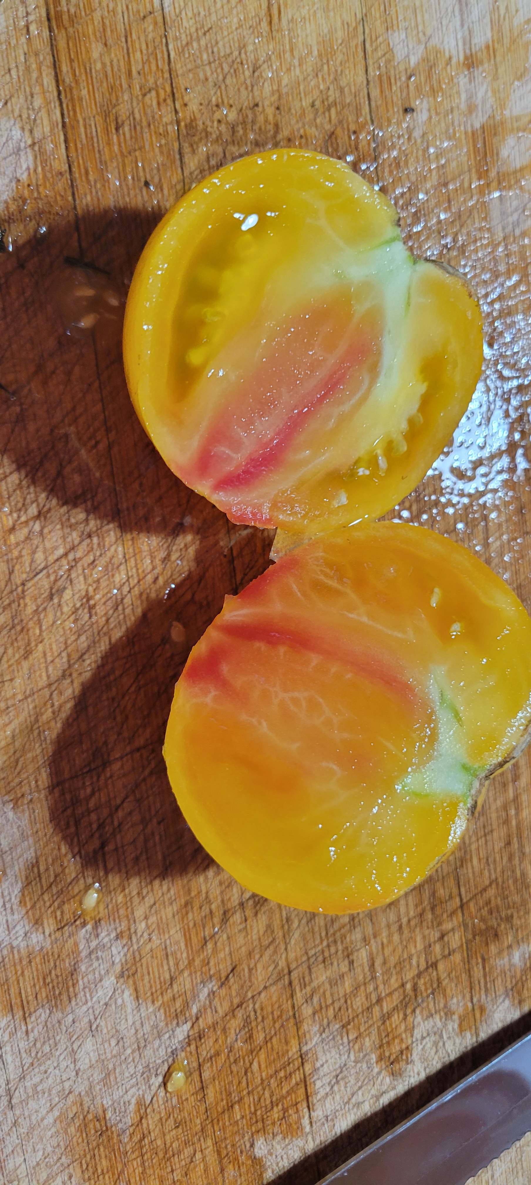 We had purchased some tomato seeds that ended up not being what they were labeled to be…it happens. Unfortunately, I had planted 10 plants before realizing this so we have ended up with a HUGE amount of what we believe to be Mr. Stripey tomatoes, a yellow tomato with red stripes. They are very good, don’t get me wrong, just not what we expected. Well, I don’t care what my ketchup looks like so we chose those as our test subjects. Spoiler alert…the ketchup ended up dark red anyway.