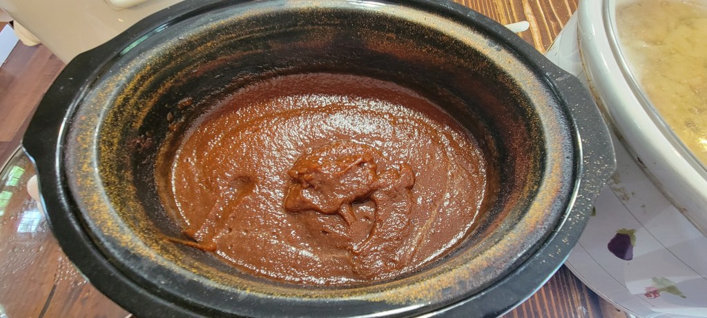 - Add all ingredients to a crockpot(s) and cook for several hours.