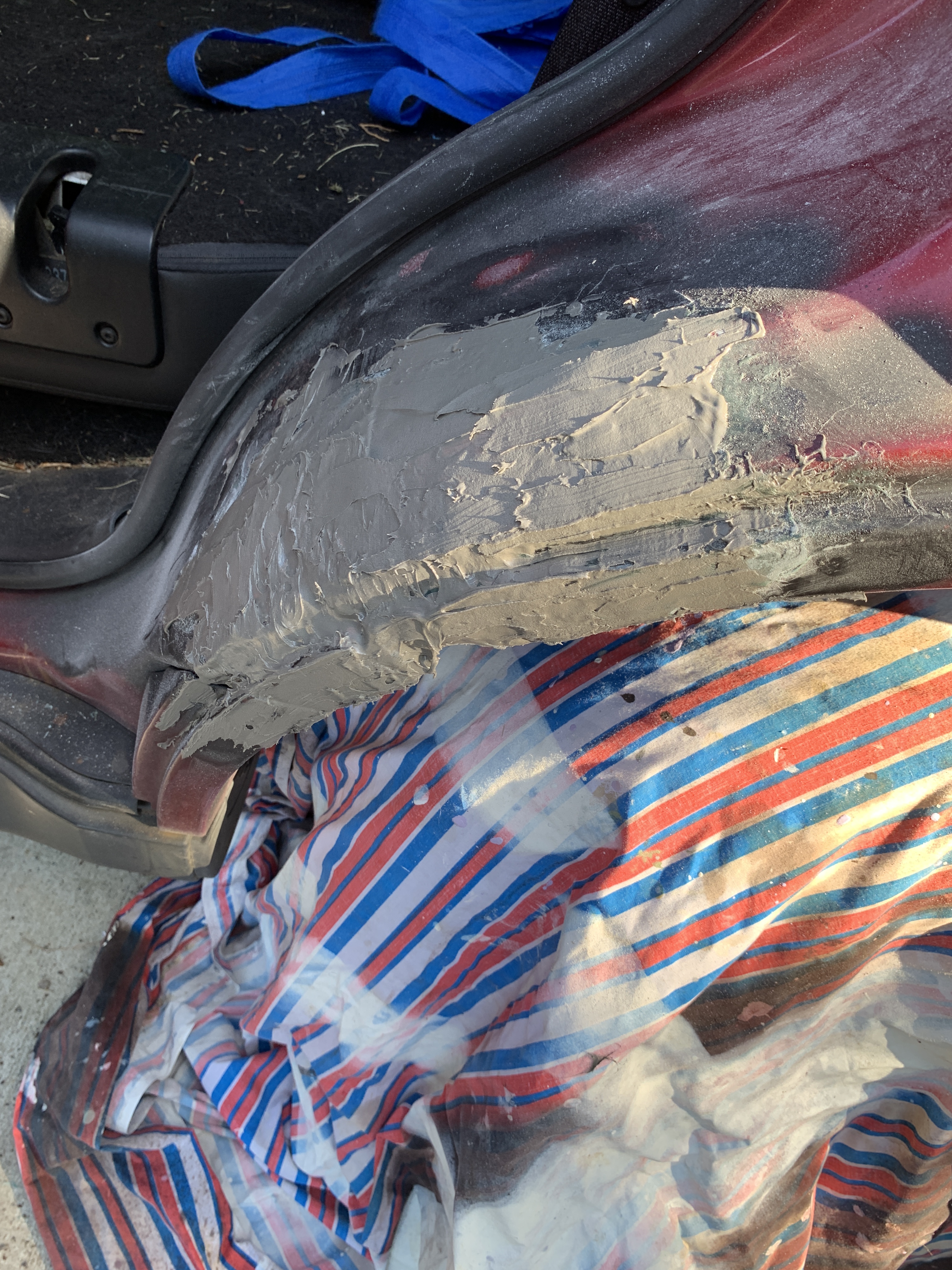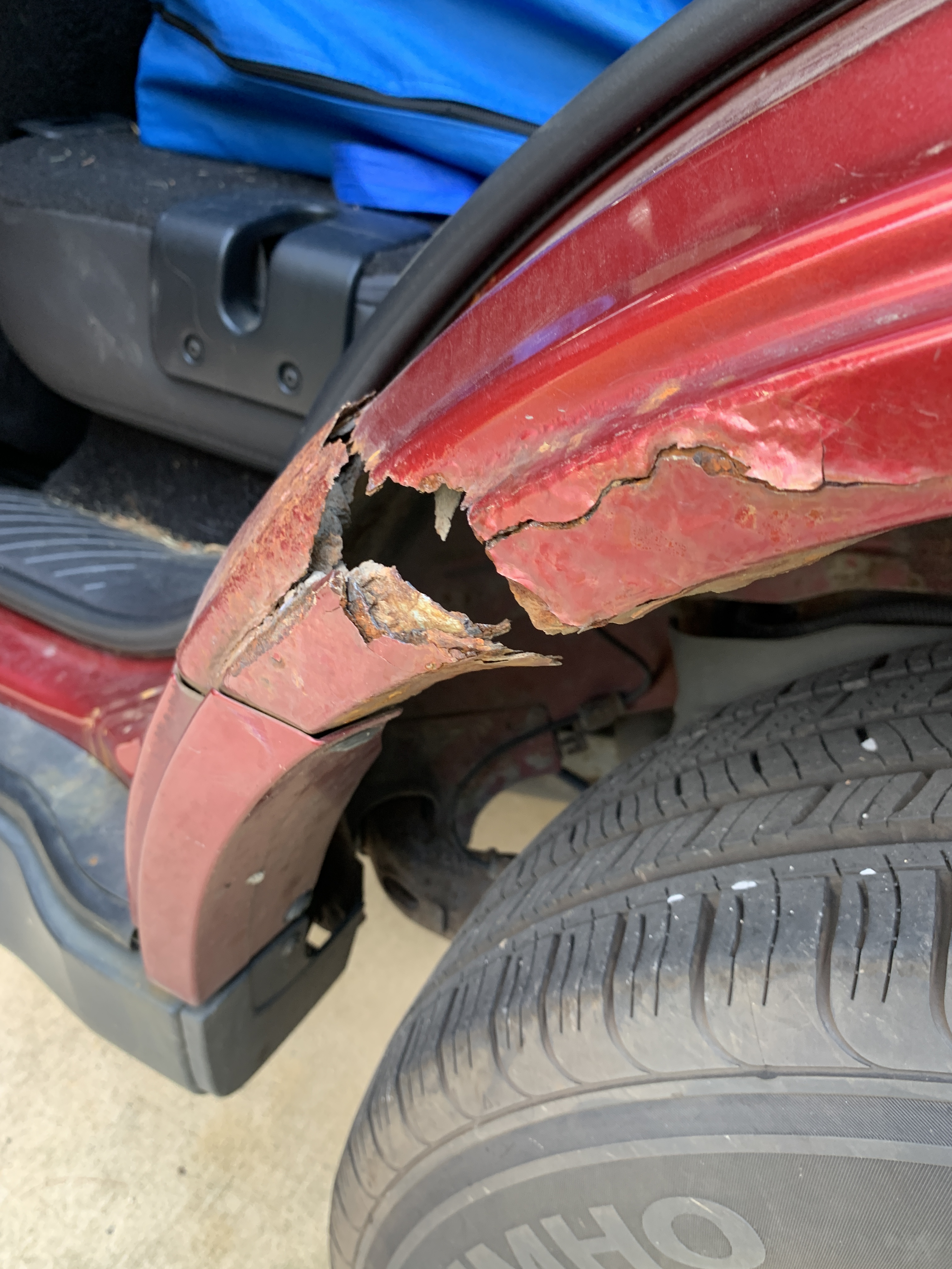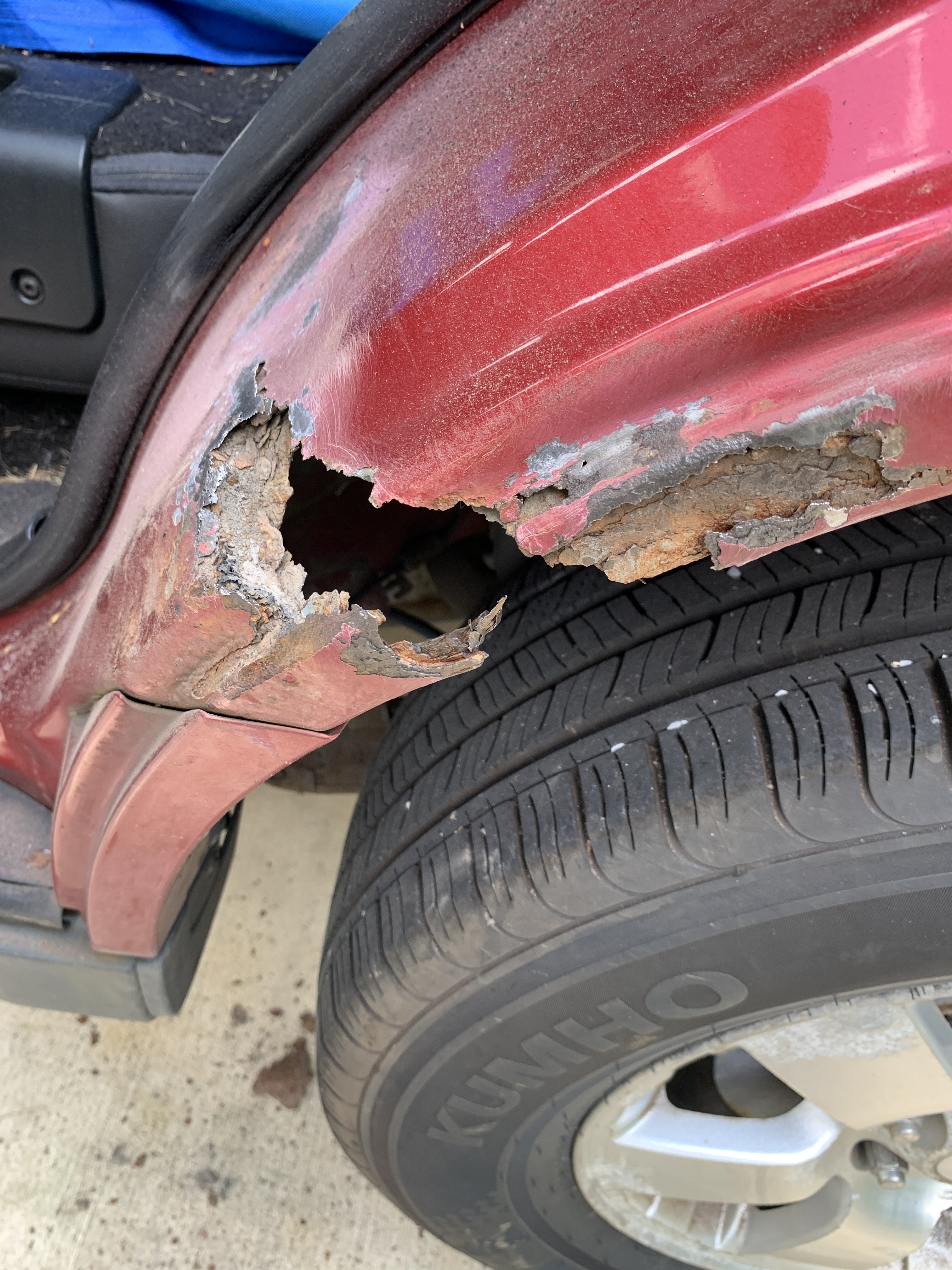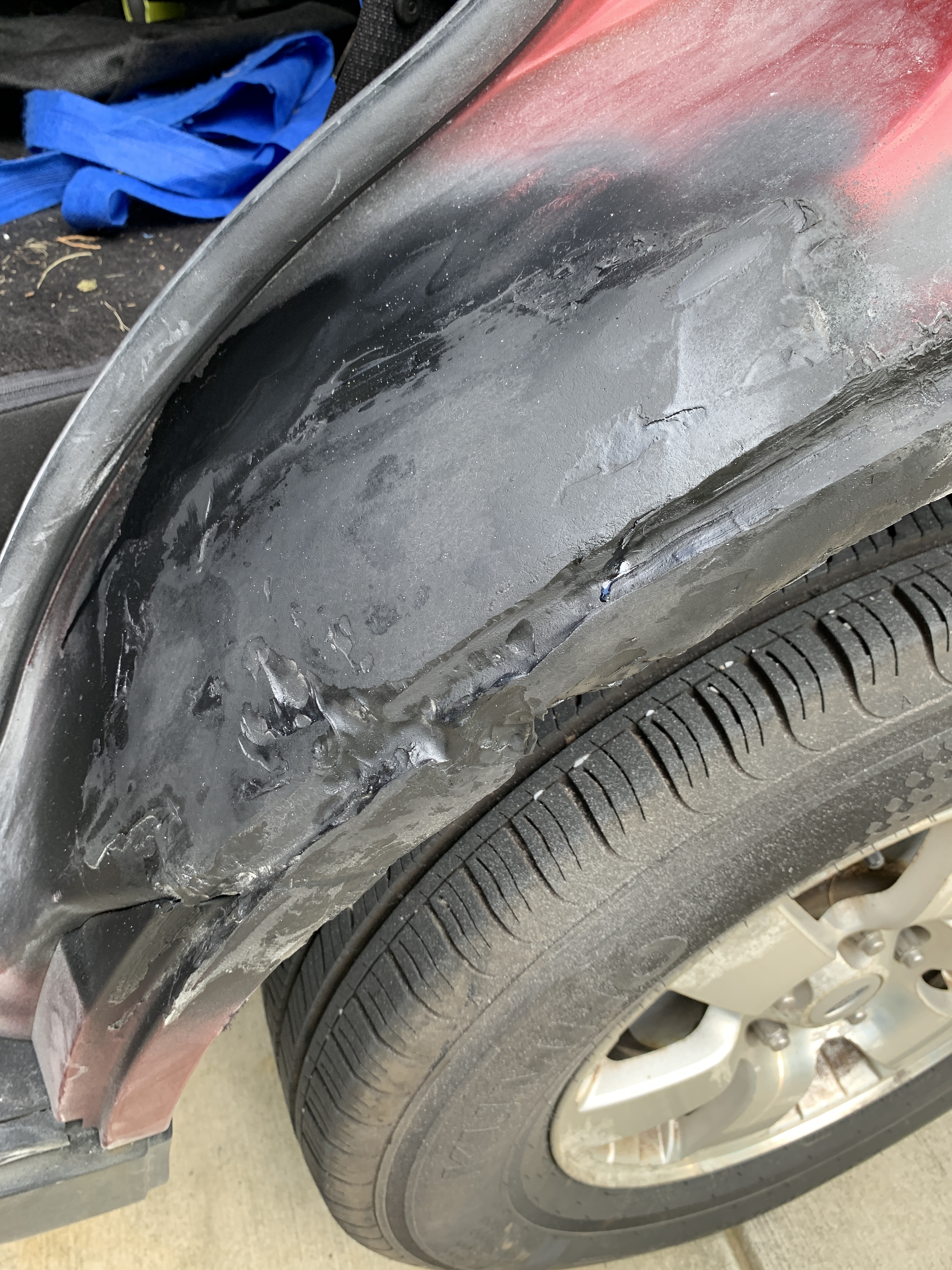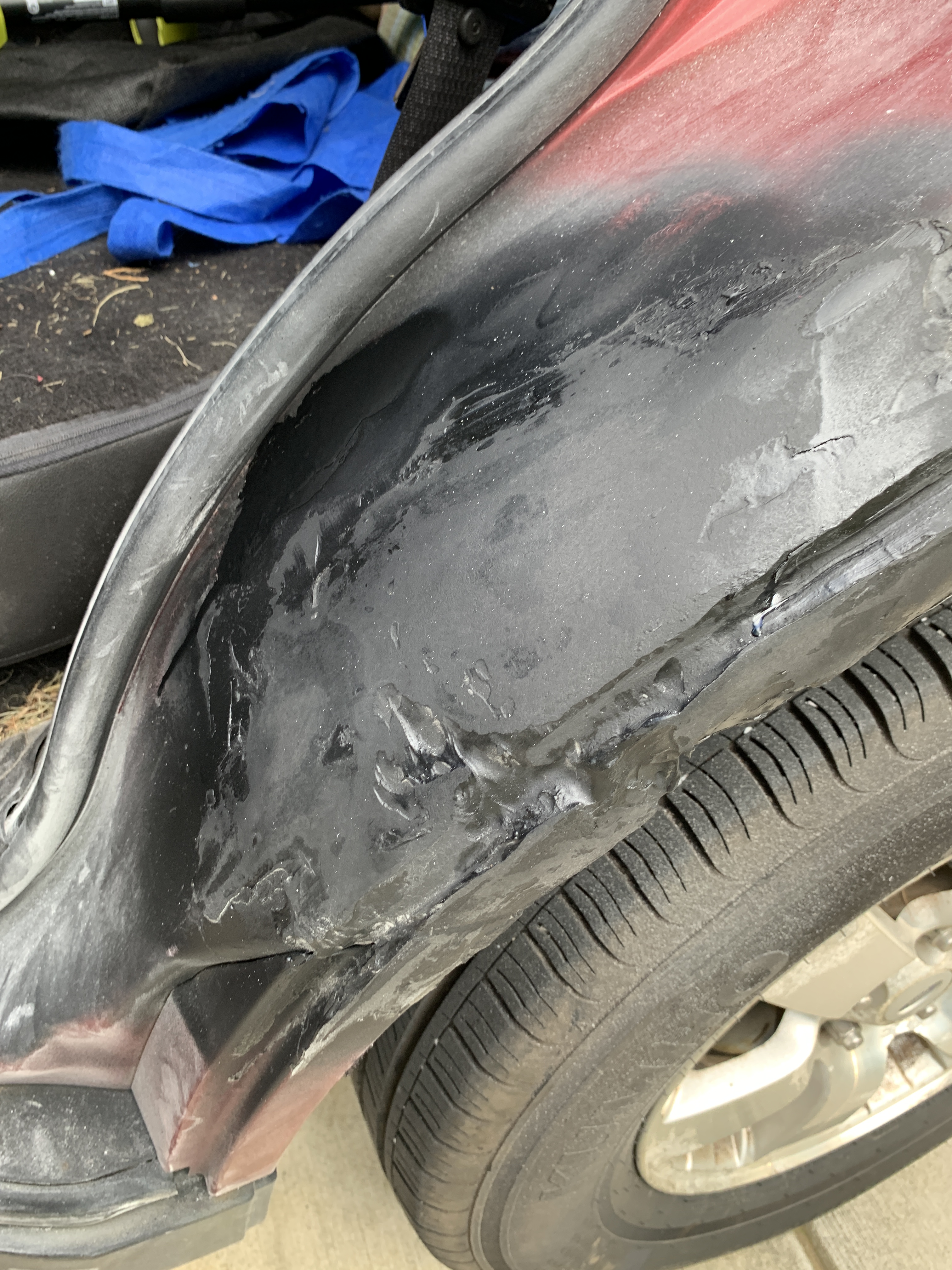 This past weekend, I dove into the world of auto body repair. Rebecca’s car had a small rust spot on the wheel well that, over time, had grown into a hole and then a crack that was larger than I was comfortable with. So, with a bit of determination and a lot of YouTube tutorials, I set out to patch it up.