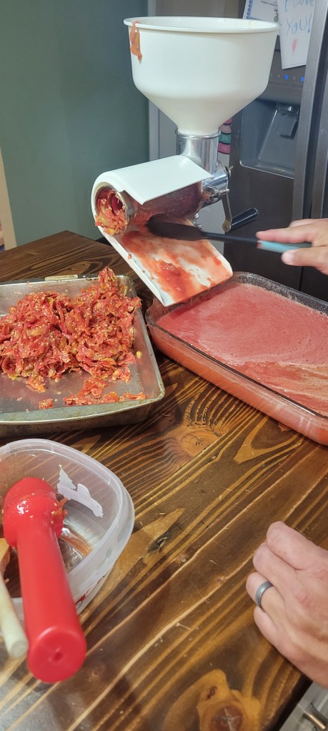 Whenever I am making our weekly dinner menu, and I ask Eva what she would like, inevitably her answer is always “Pizza!” About 2 years ago we started making our own dough which was surprisingly easy, a fun way to spend time together, and a healthier option as we are able to make it fresh so no preservatives are needed. Around that same time, we were also blessed with an abundance of tomatoes from our garden so it only made sense that we also started making our own pizza sauce as well! We’ve also attempted to make our own mozzarella, which wasn’t so successful but we do plan to try again!