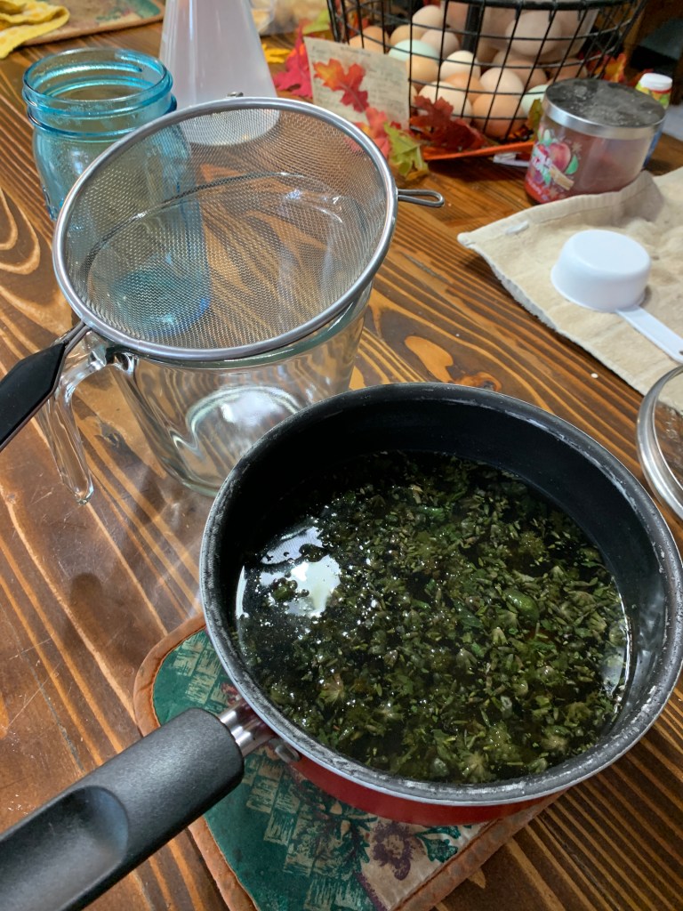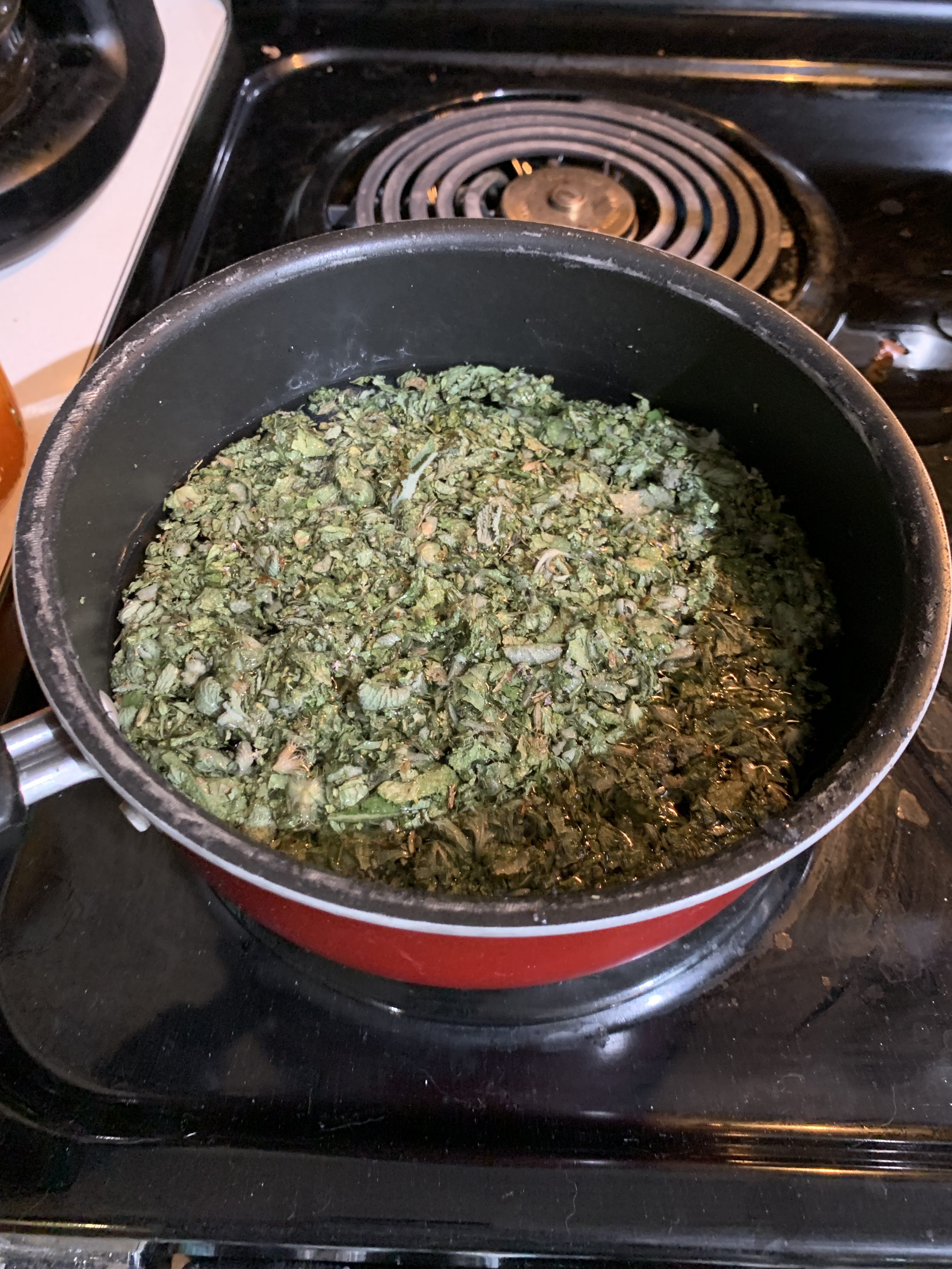 - Simmer: Add all herbs and ginger to a pot with 1 quart of water. Heat gently to about 190°F (do not boil).