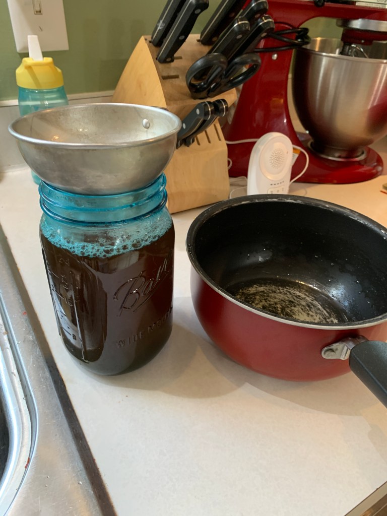 6. Bottle: Remove from heat and, using a funnel, transfer the syrup into clean glass jars or bottles. Allow to cool completely before sealing.