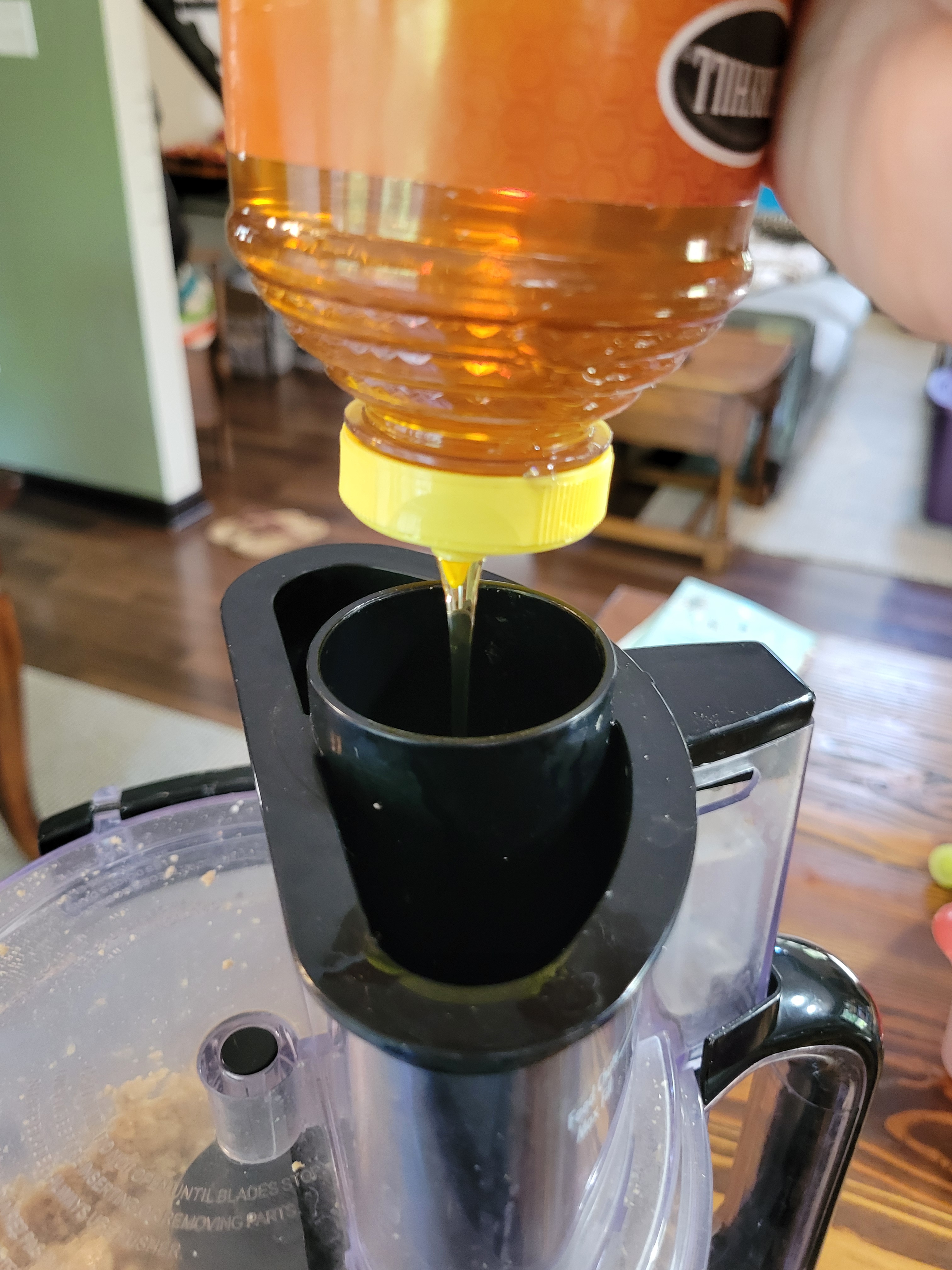 - When using honey as the sweetener, it will actually make the peanut butter stiffer, so you will have to add some kind of oil to add moisture back in. I use avocado oil but any light tasting oil is fine.