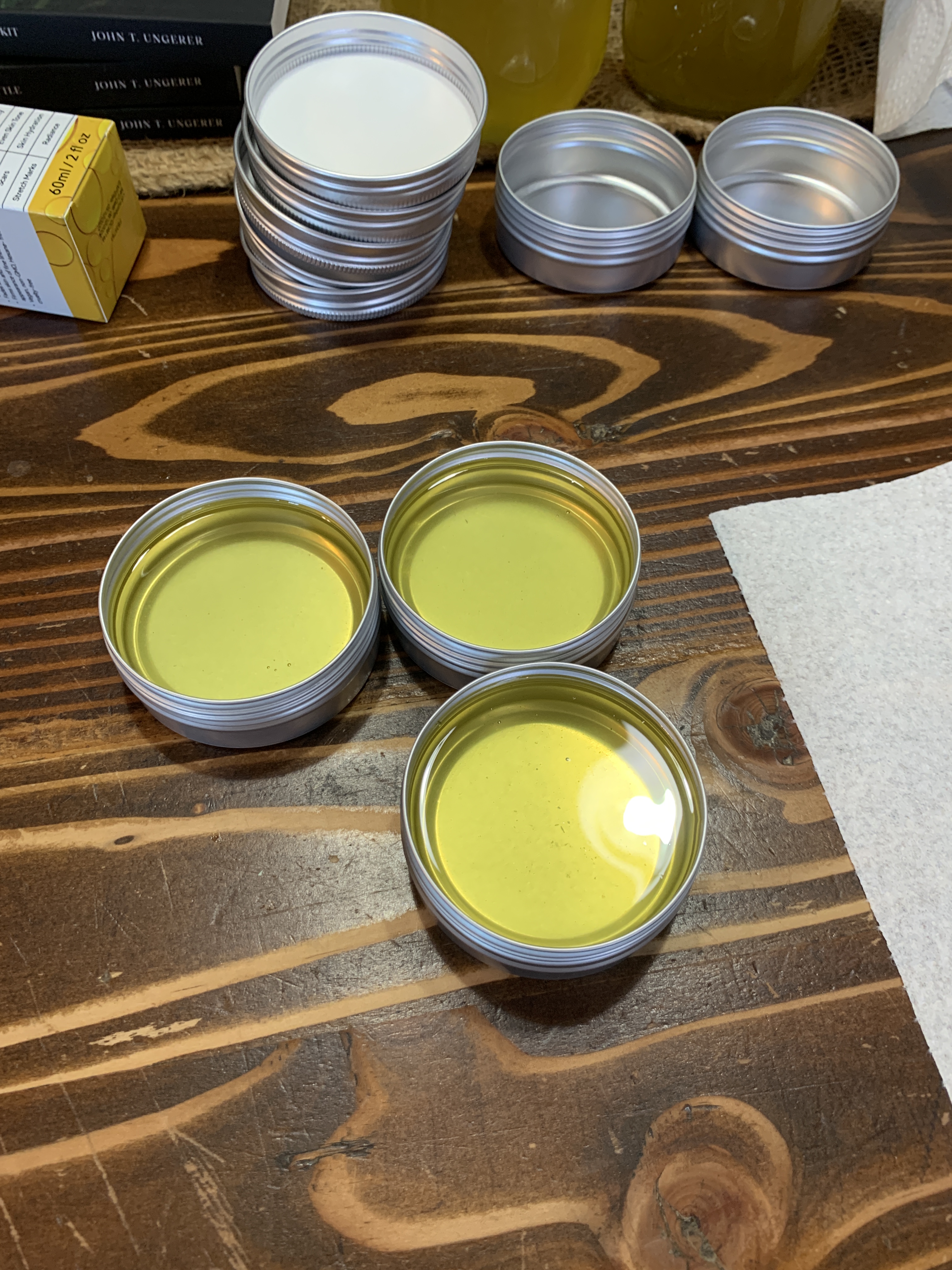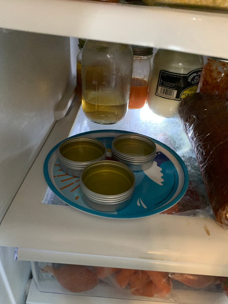 ProTip: You can put your salve containers in the fridge for 5-10 minutes to cool and set them quicker, and they will set up a little more consistently.