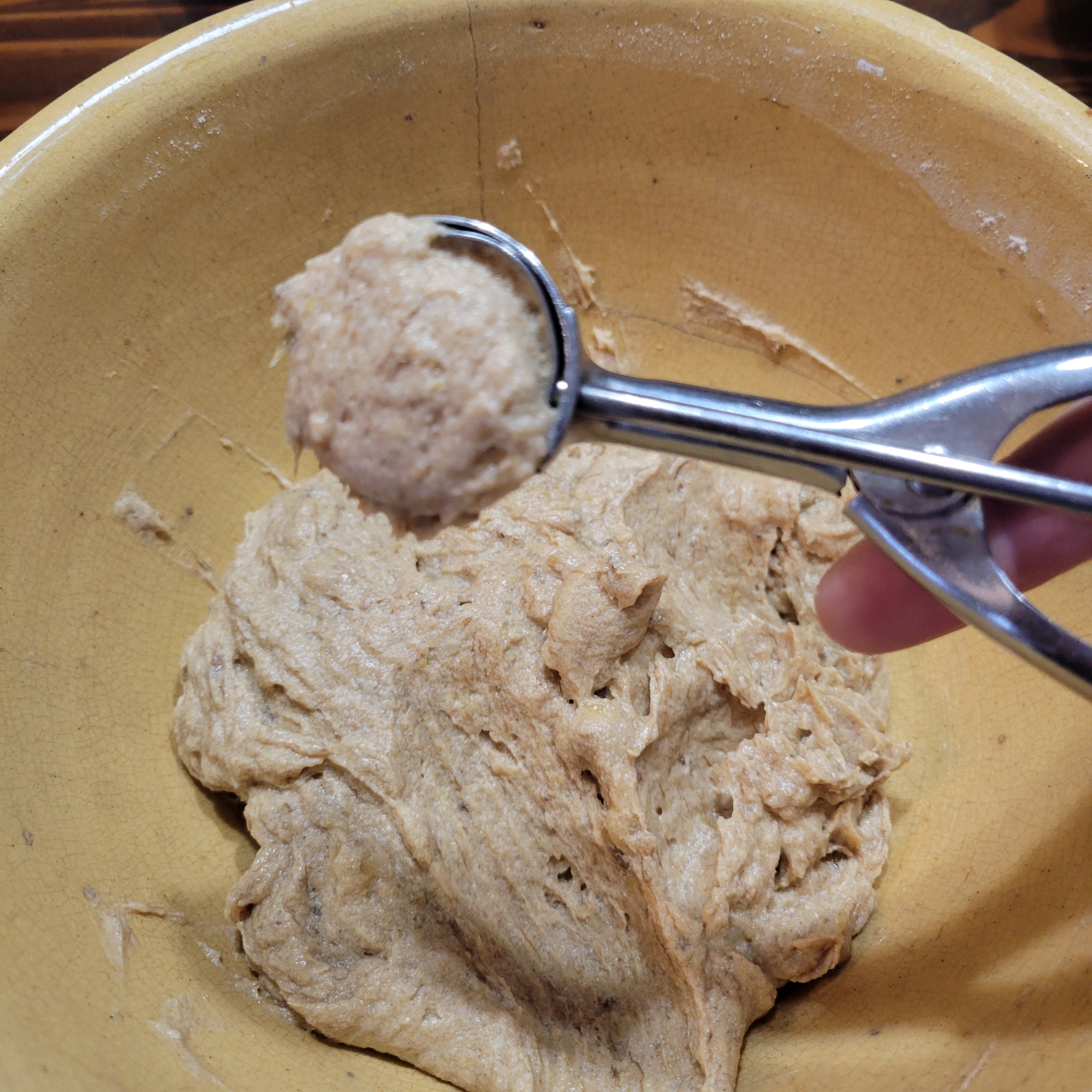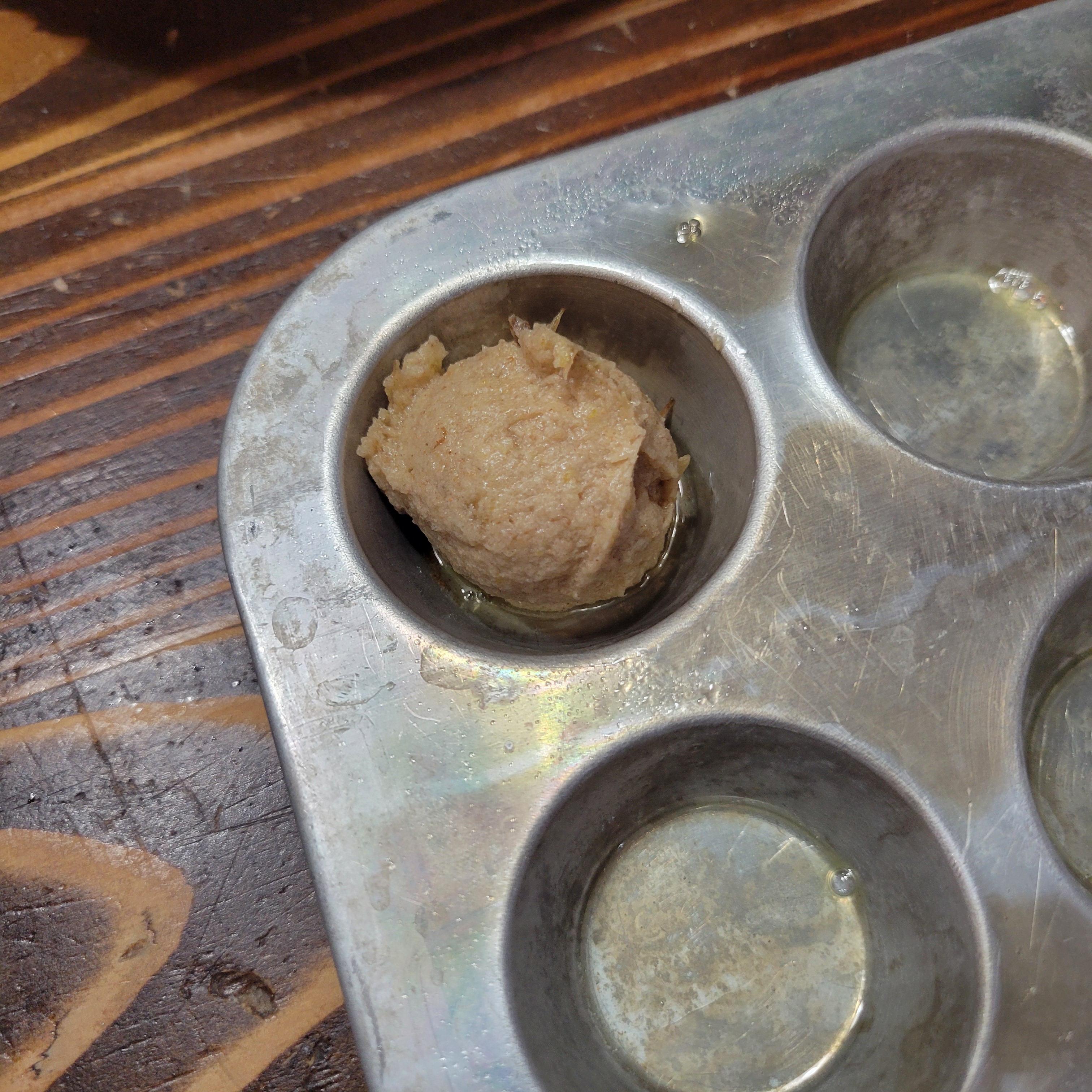 - Fill each prepared muffin cup almost full with batter using a small cookie scoop.