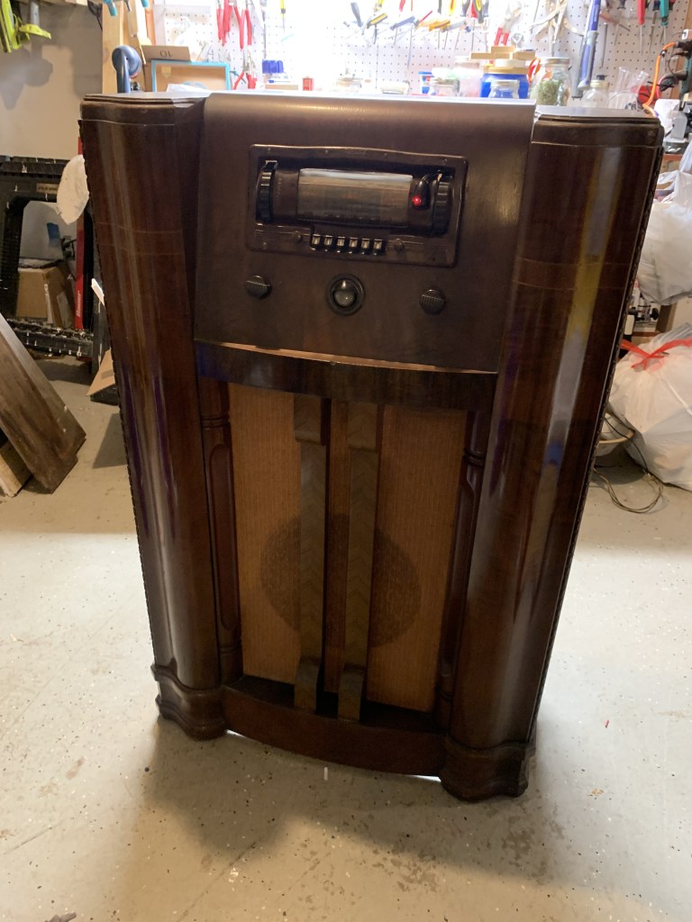 Life has its seasons, and unfortunately, Rebecca’s aunt recently reached that point where living alone wasn’t safe anymore, and she had to move into a care facility. It’s a bittersweet transition that many of us know well. The family gathered to help clean out her house, sorting through decades of memories. In the process, we ended up with a beautiful piece of history: an old floor-standing radio.