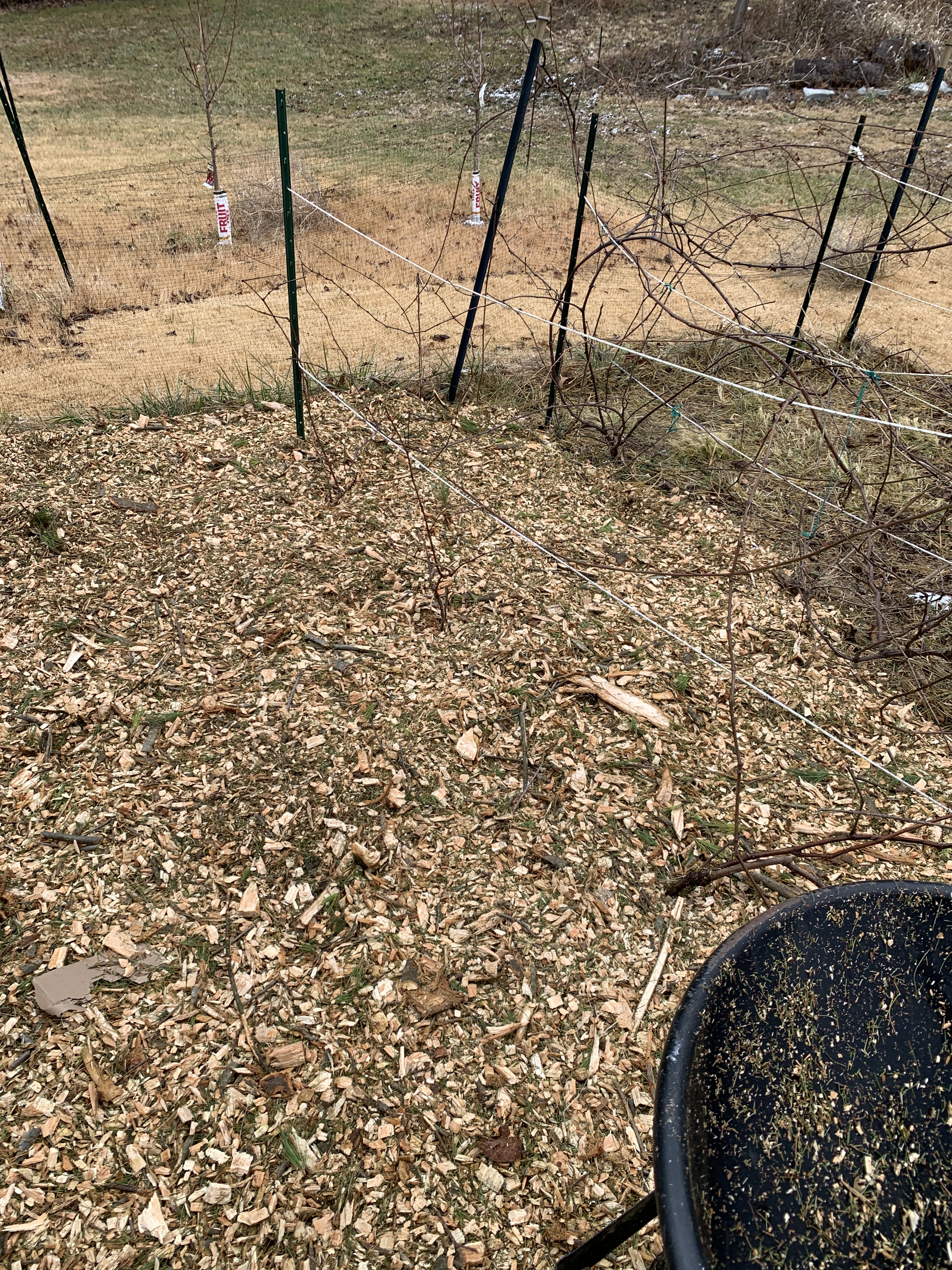 I’ve spent about three hours out there so far and I’m about halfway done. It’s hard work, but the logic is sound: by doing this now, while the grass is sleeping, the heavy layer of chips will smother out the weeds before they can even wake up in the spring.
