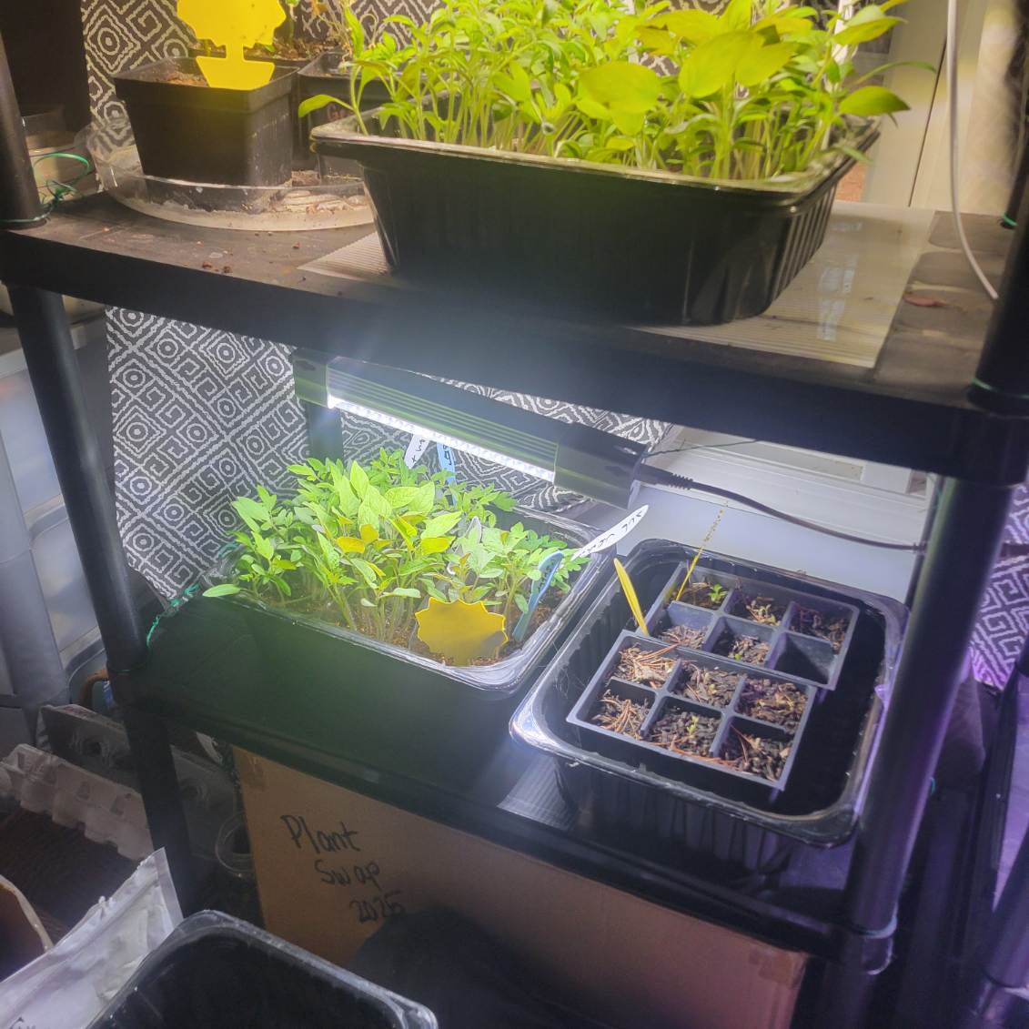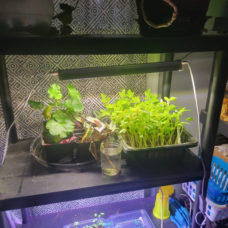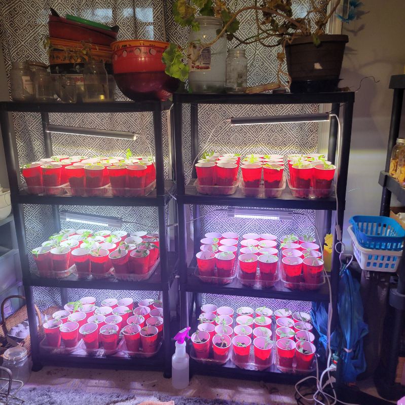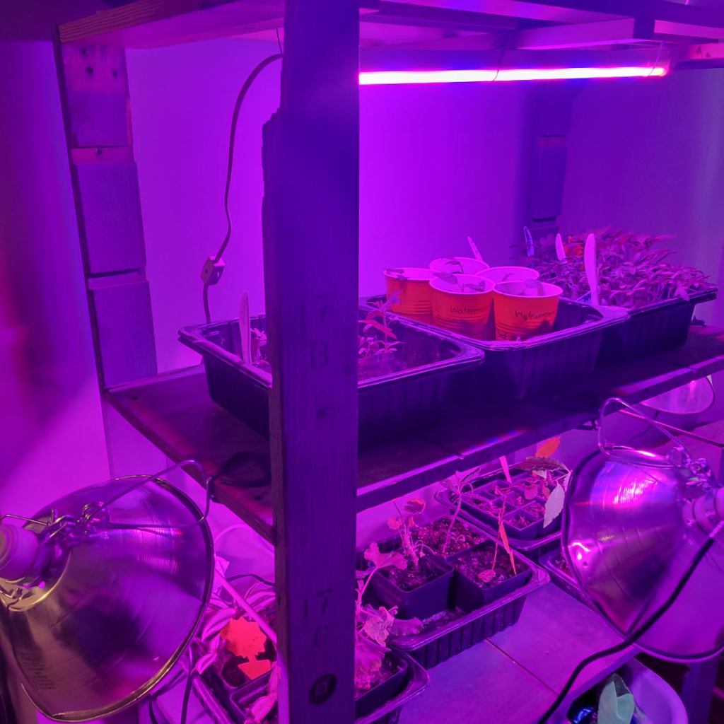 Literally every room with a spare square foot of space currently has a folding table or shelving system set up, complete with heat mats and bright purple grow lights. We are constantly bumping into trays, but we wouldn’t have it any other way!