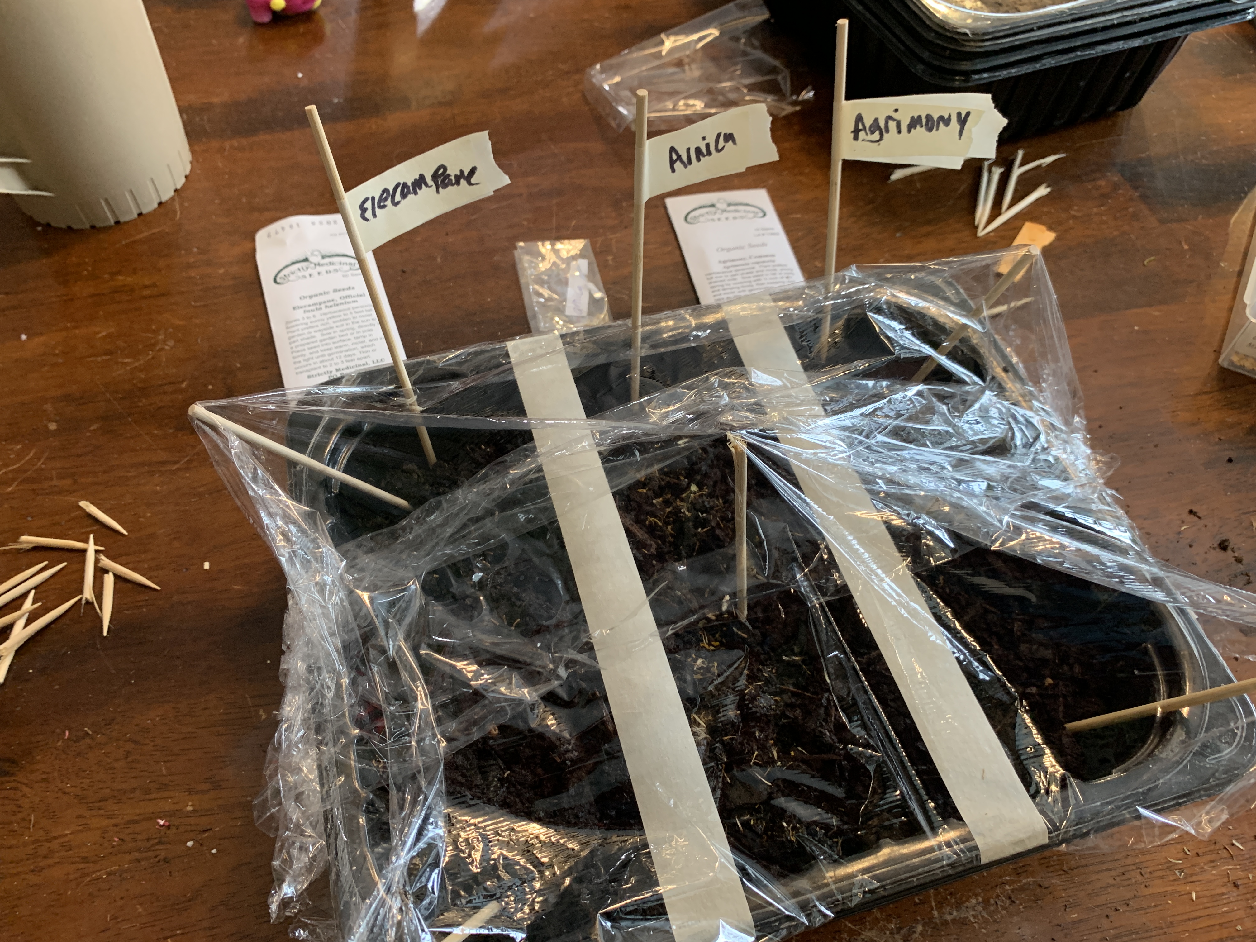 While Rebecca tackles the tomatoes, I have been busy starting several new plants to expand the Grow, Gather, Heal medicinal herb gardens.
