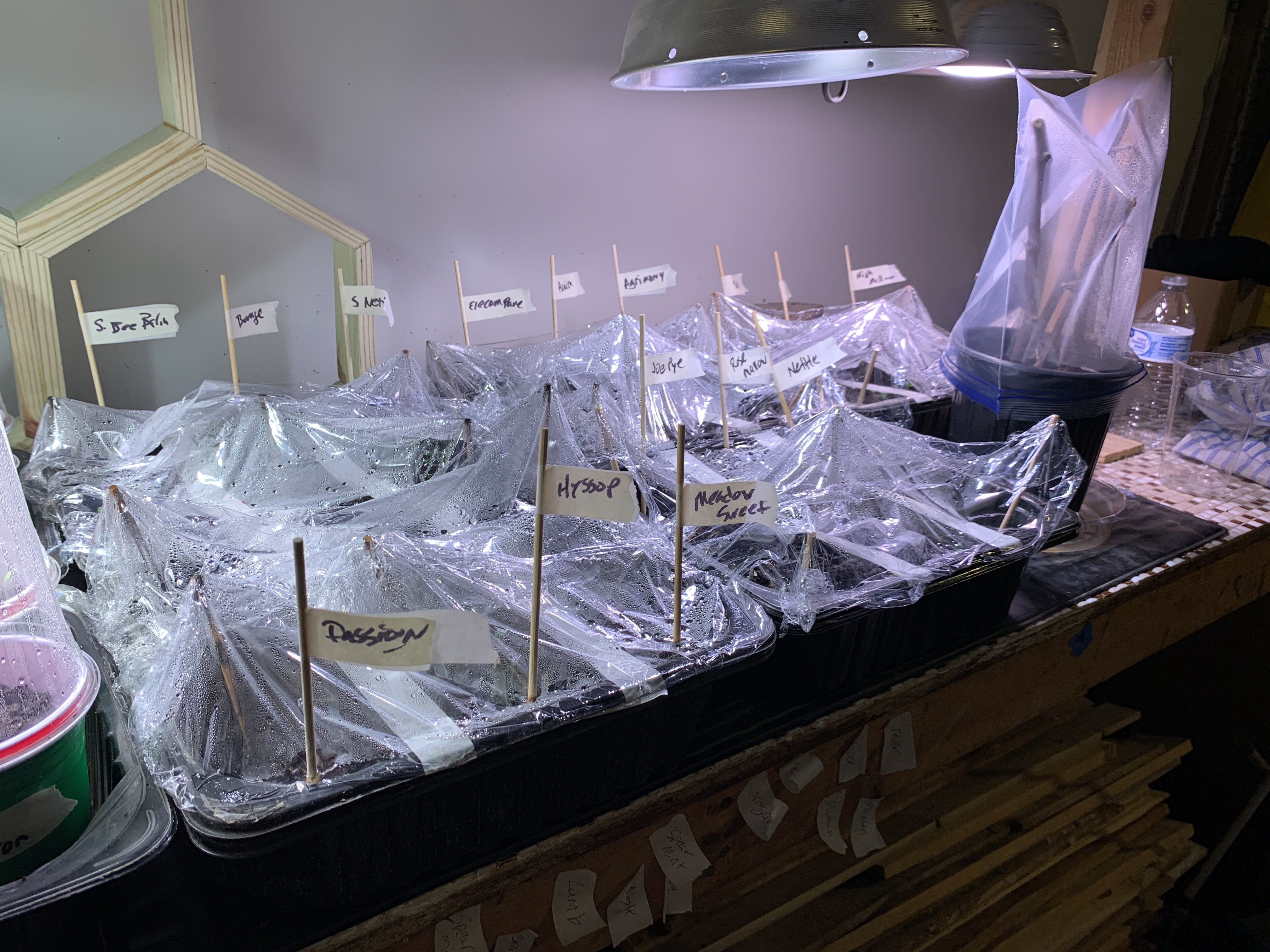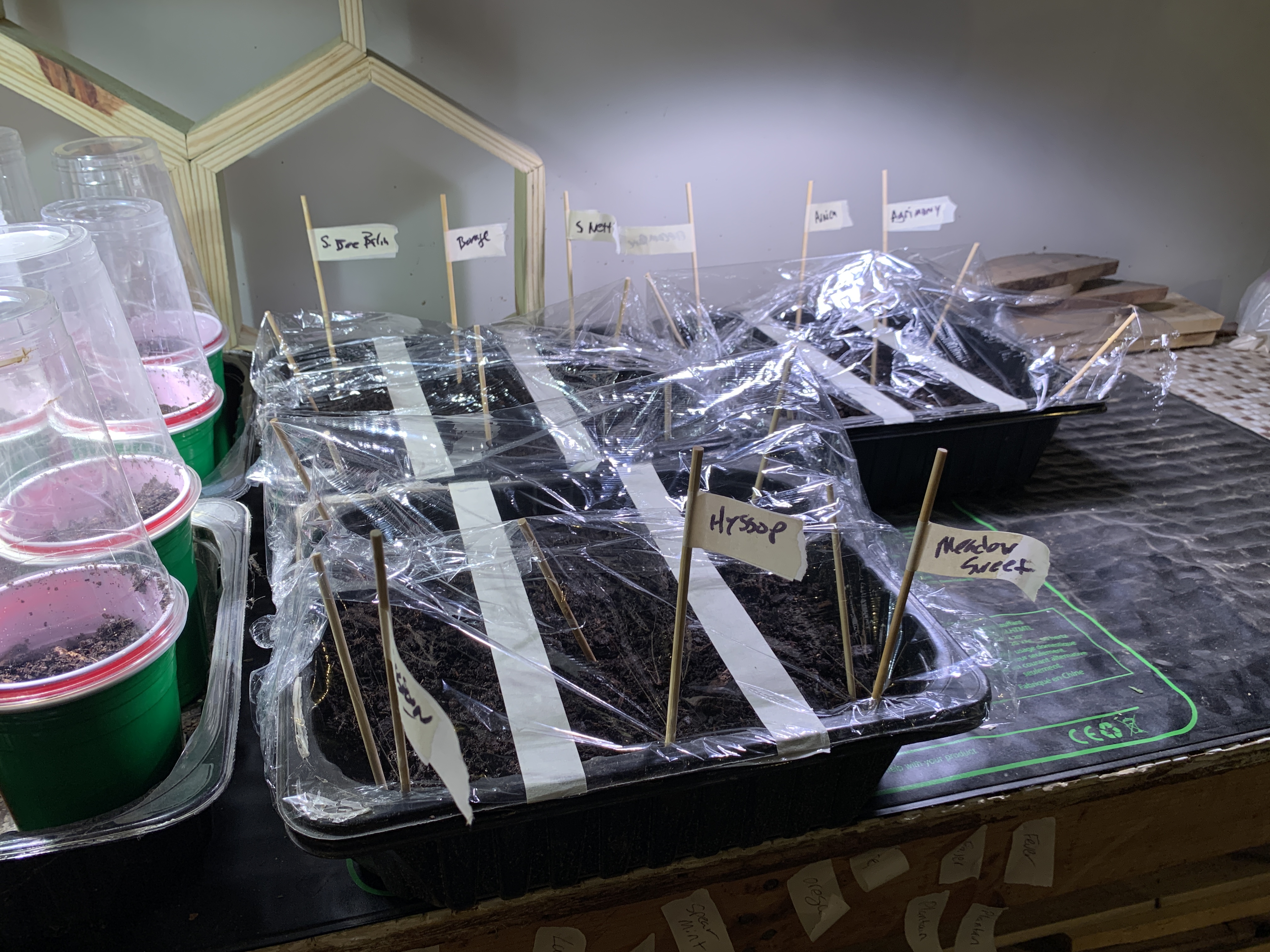 We also started flats of herbs we already grow but wanted to expand into much larger patches, including our old favorites: Stinging Nettle, Borage, and Hyssop.