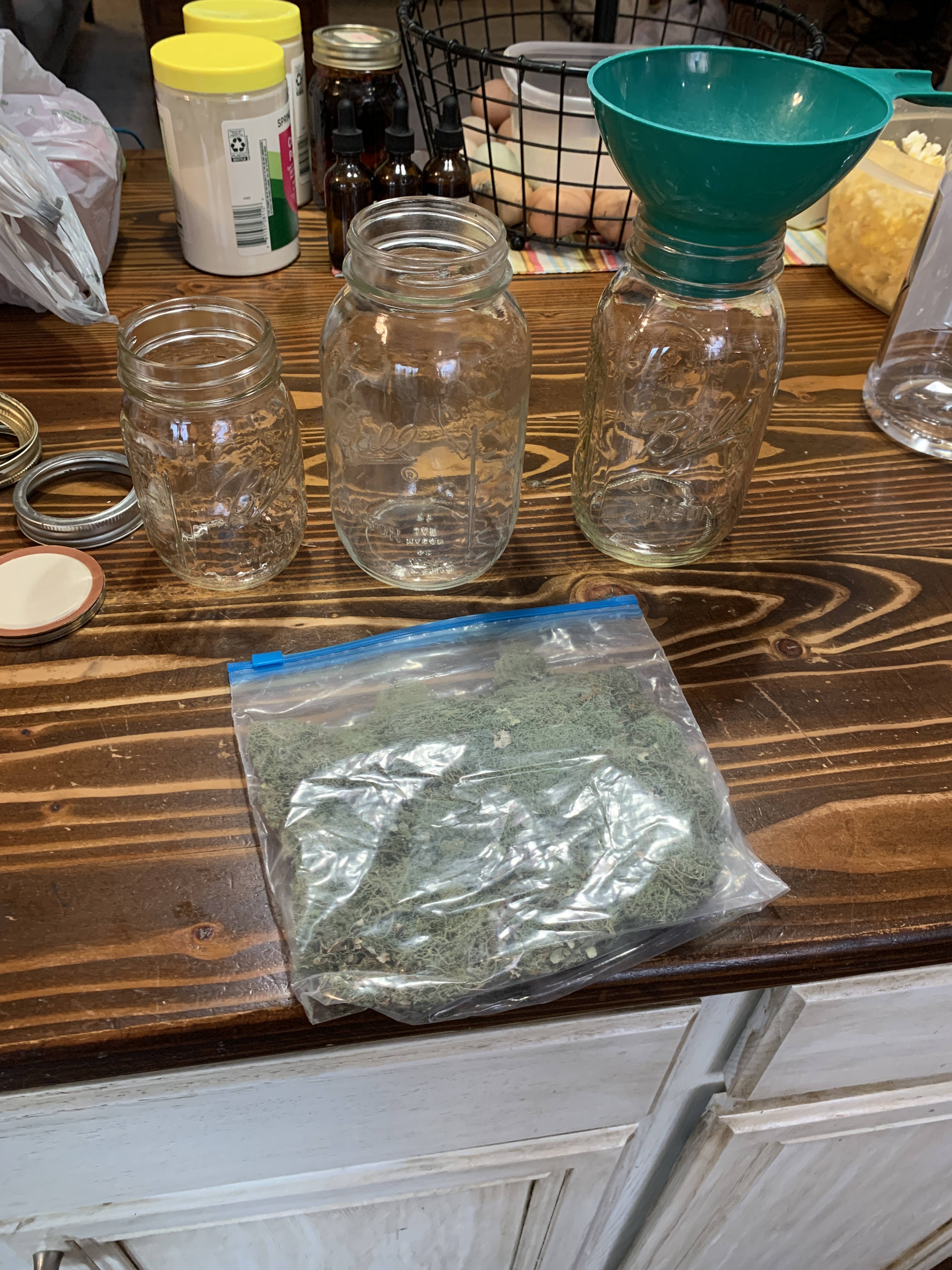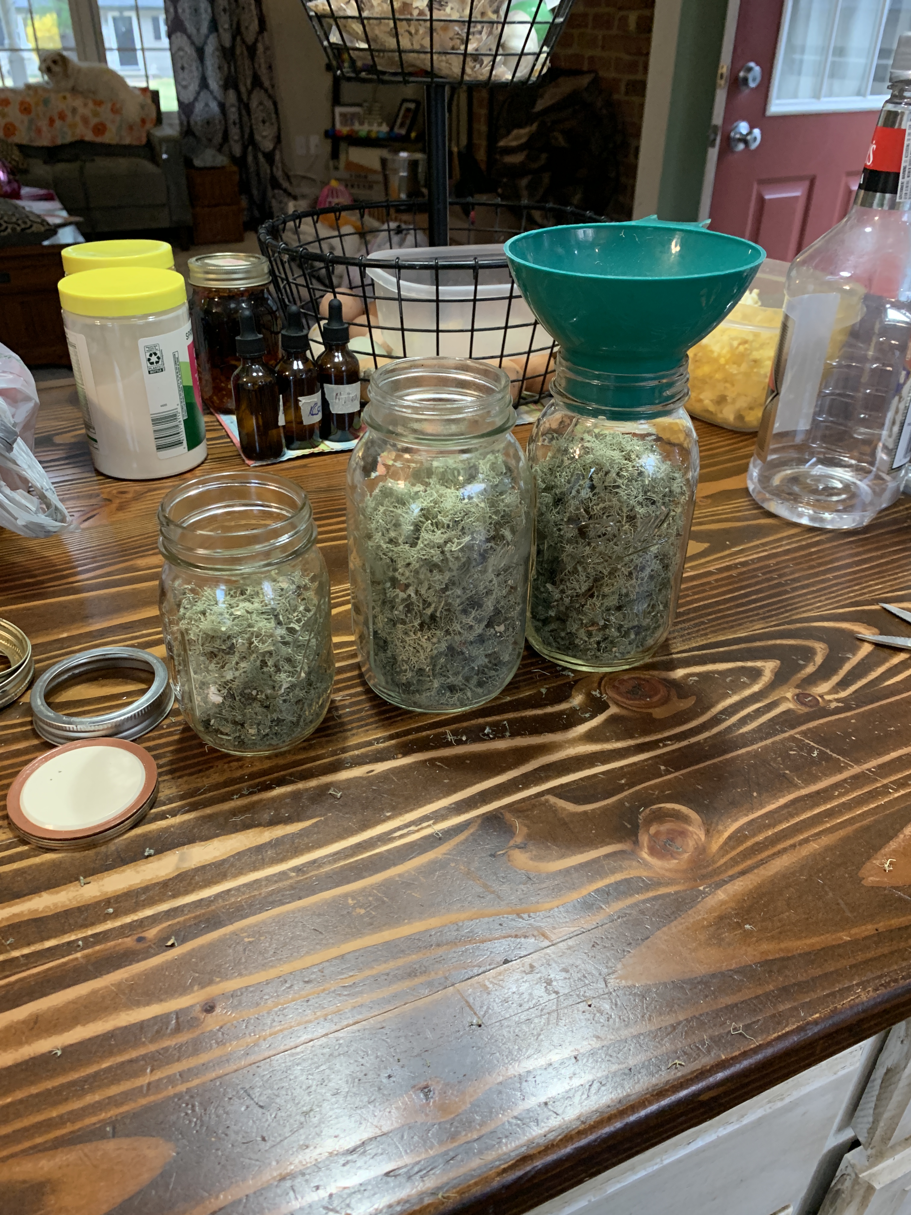 I also had plenty of dried Usnea left over to start a pint of infused oil, which we will eventually turn into a powerful wound-healing salve. This oil will also sit and infuse for at least 6 weeks. Once everything is ready, we will do a follow-up post showing the final steps for both!
