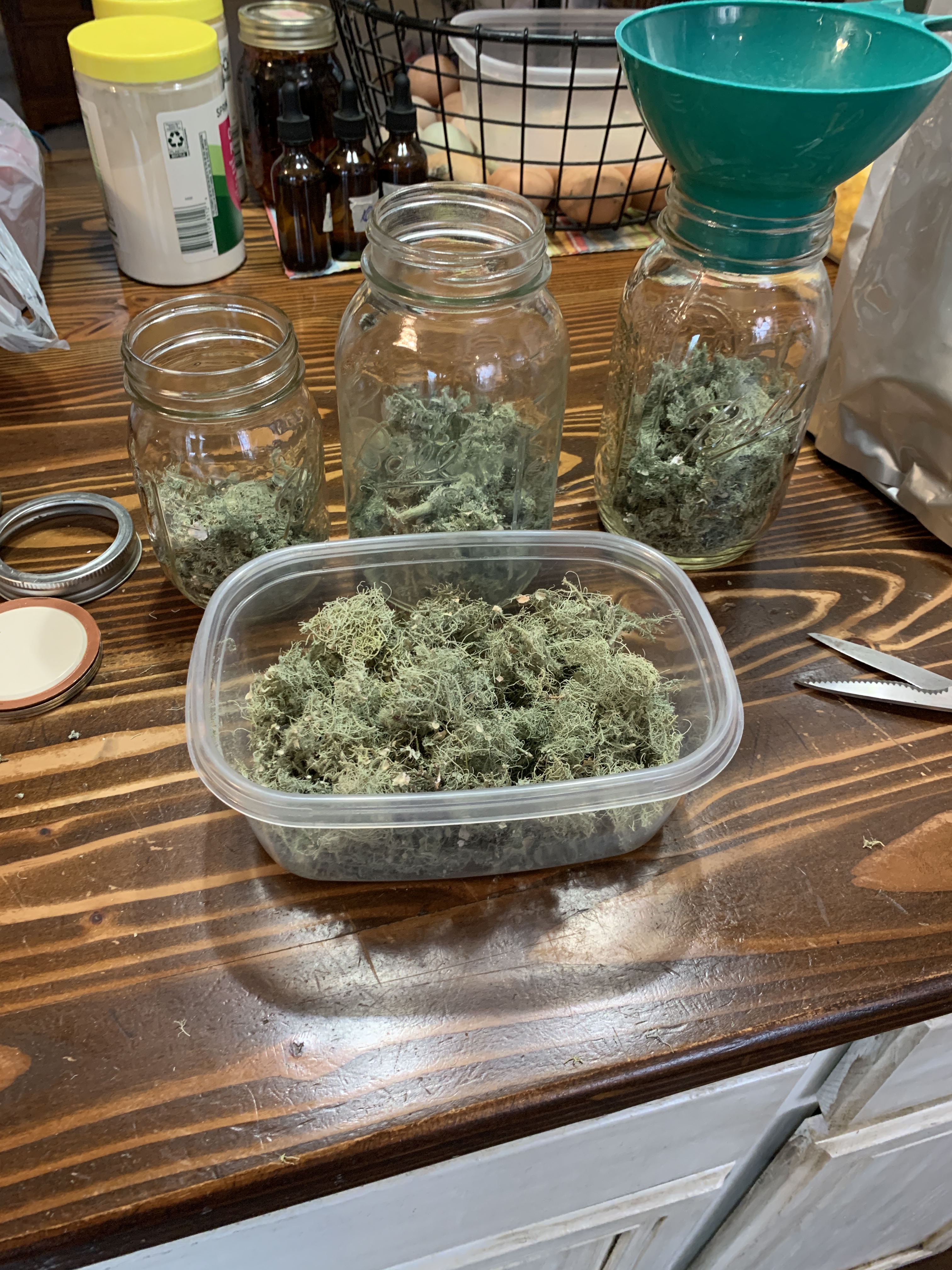 A huge thank you goes out to a couple of amazing friends from our Grow, Gather, Heal Facebook page! We have been completely unable to locate any Usnea around our property here in Maryland, and they were incredibly kind enough to send us a package of dried Usnea to use. I am absolutely thrilled to finally include this powerhouse in our homestead inventory!