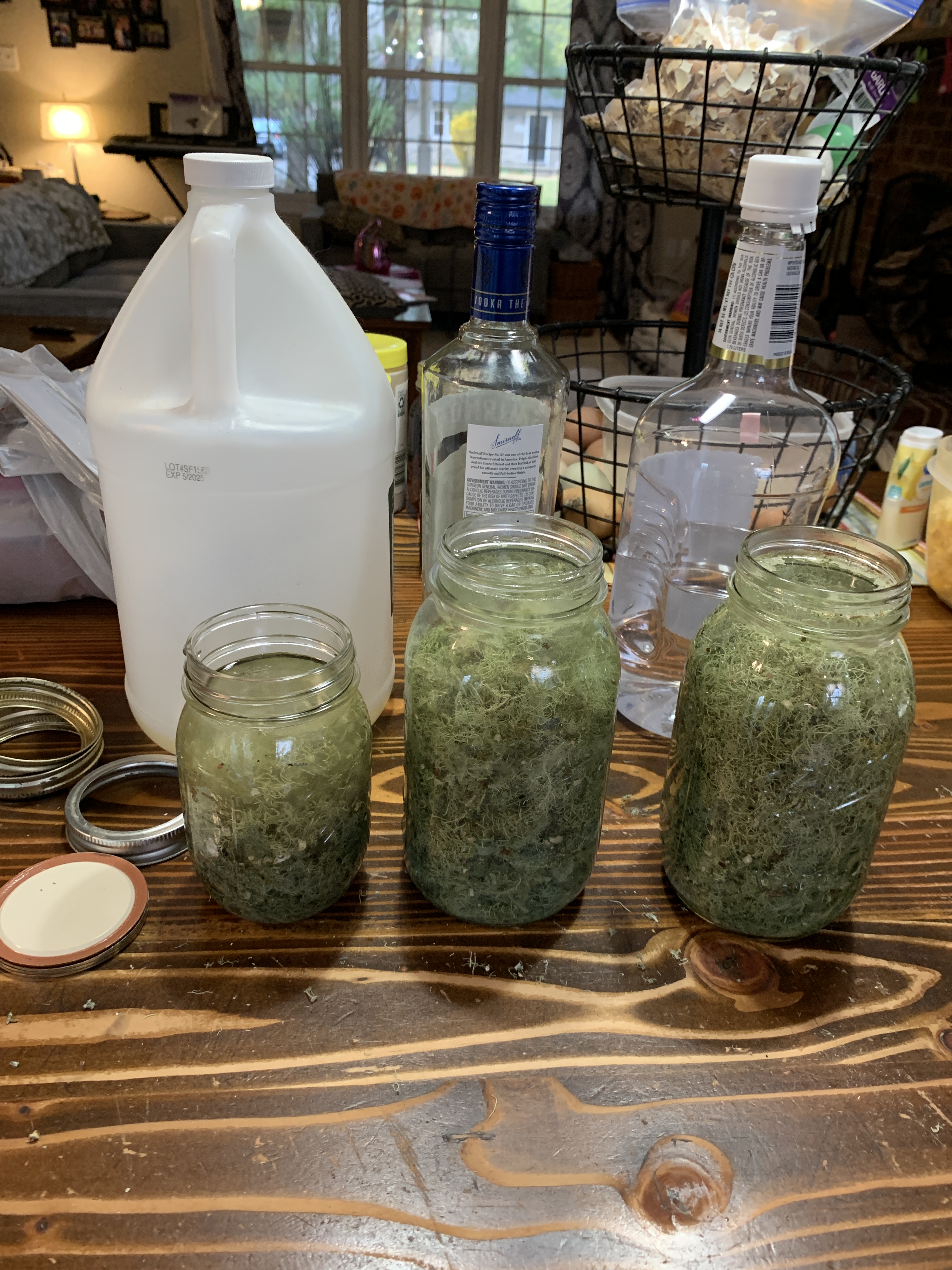 We did some deep-dive research before starting our extractions, and there seems to be a massive split in the herbal community about what proof of alcohol is needed to pull that stubborn usnic acid out of the lichen. Some prominent herbalists swear by standard 80-proof vodka, while others insist you need 100-proof (or higher) to properly break it down.