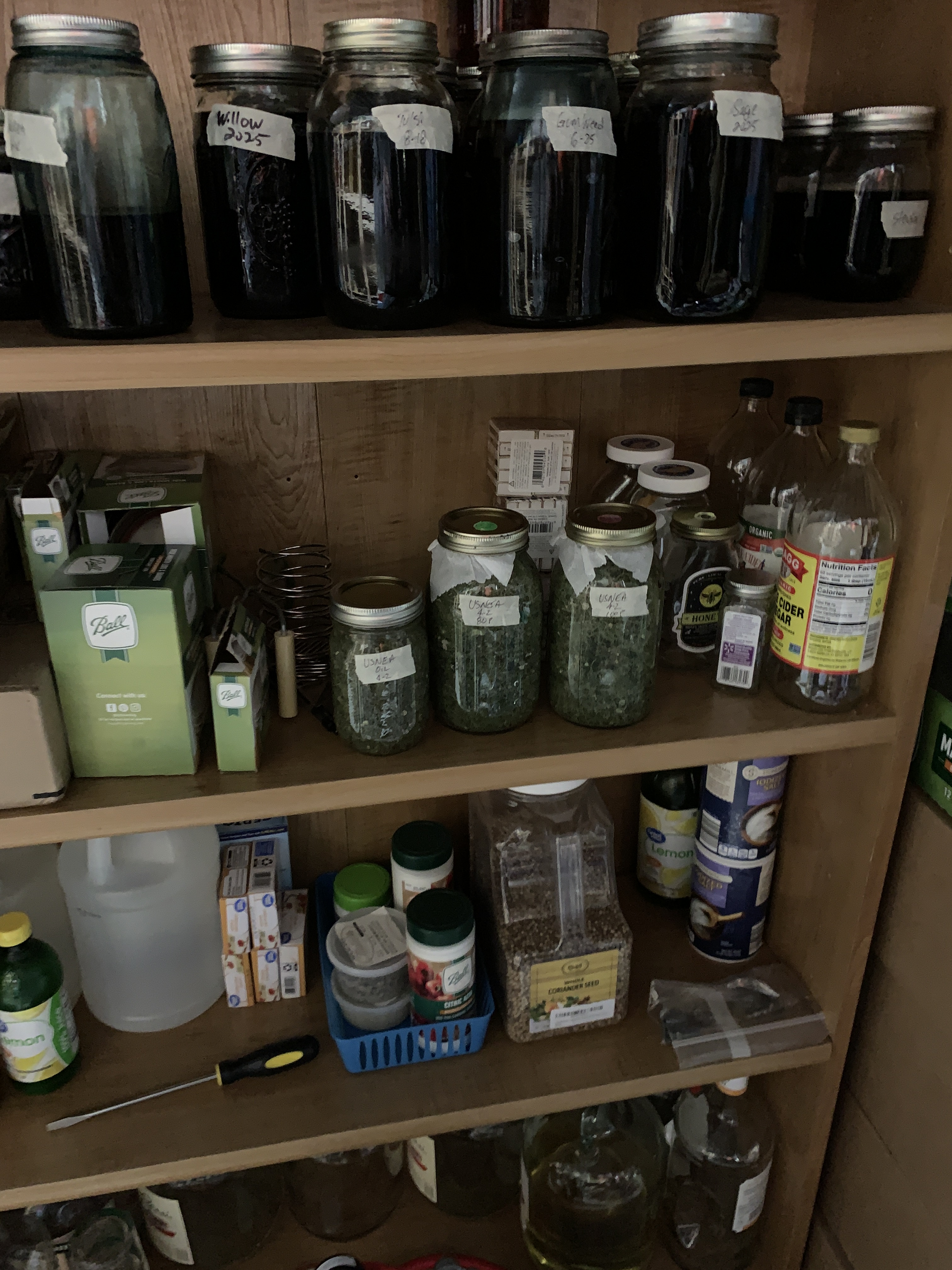 So, in the spirit of homestead science, we went ahead and are doing both! We are making a double-extraction tincture using 80-proof for one batch and 100-proof for the other. We will let them both sit in a dark, cool place for 6 to 8 weeks before we strain them and move on to the second part of the double extraction (the hot water decoction).